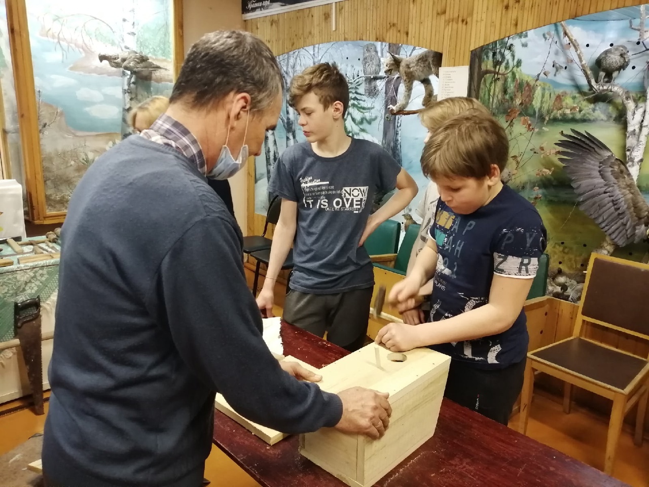 И ребята быстро окружили столы со стройматериалами. Для начала они с интересом послушали «серебряных» волонтеров, которые поведали школьникам, для кого, зачем и как правильно выбирают и подготавливают дерево для птичьего домика. Только потом мужчины приступили к практике и провели для школьников мастер-класс по изготовлению скворечников. Через несколько десятков минут три домика для птиц были готовы, и ребята вновь заняли свои места.