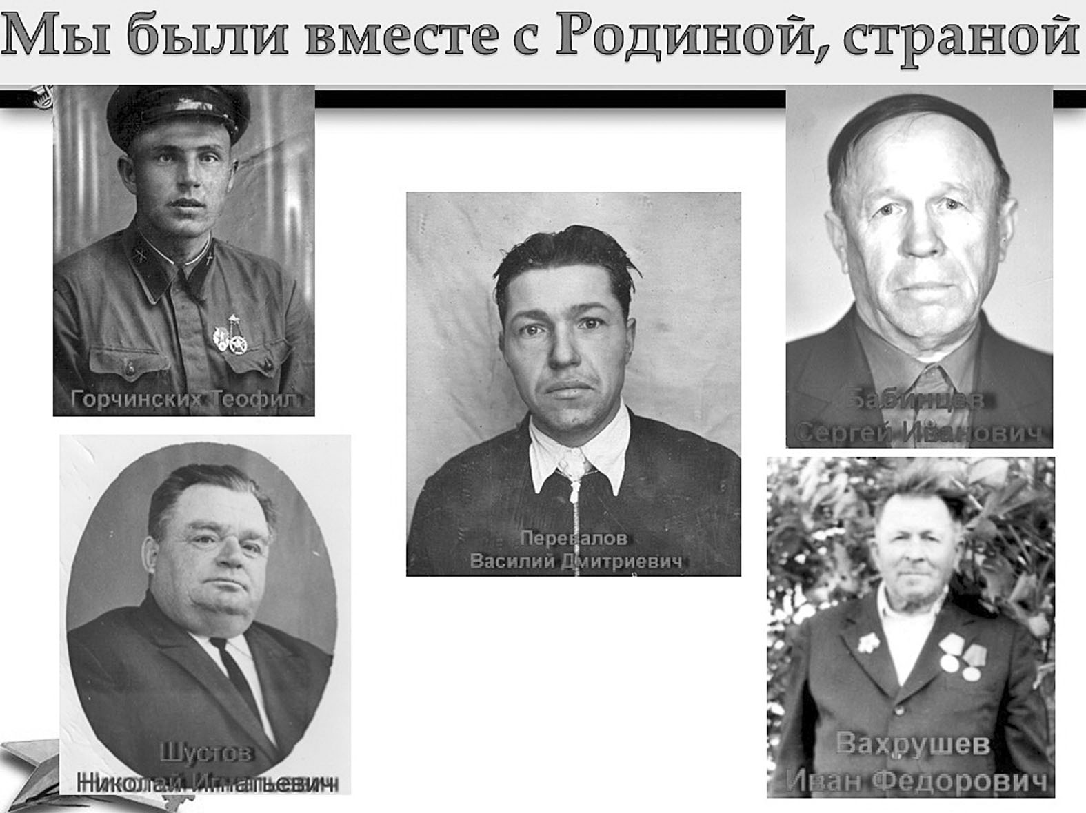 Женщины подошли к заданию творчески, каждая из работ была своеобразной. Л.П. Бажина и Т.Г. Коломыцева рассказали о своих дедах – участниках Великой Отечественной войны Т.М. Целищеве и Ф.А. Коротких. Н.А. Пенкина и Т.И. Чикишева поделились знаниями о нескольких воинах-родственниках. Презентация Ф.П. Смирновой была посвящена памяти трёх десятков земляков-верхотульцев – солдат той войны.