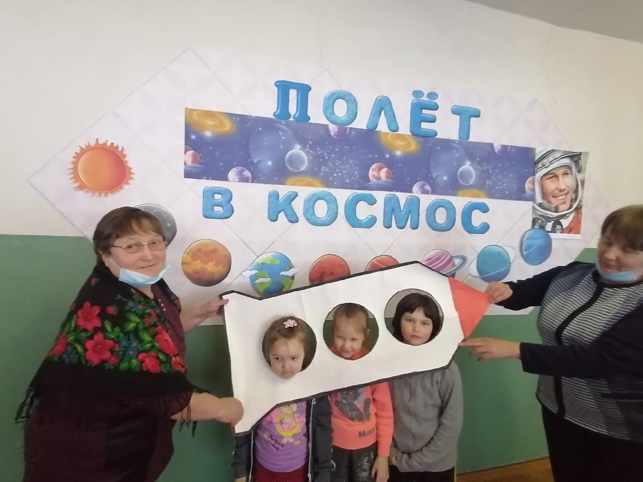 Для проведения фотосессии бабушки из бумаги смастерили космический корабль. Все ребята с радостью приняли в ней участие.