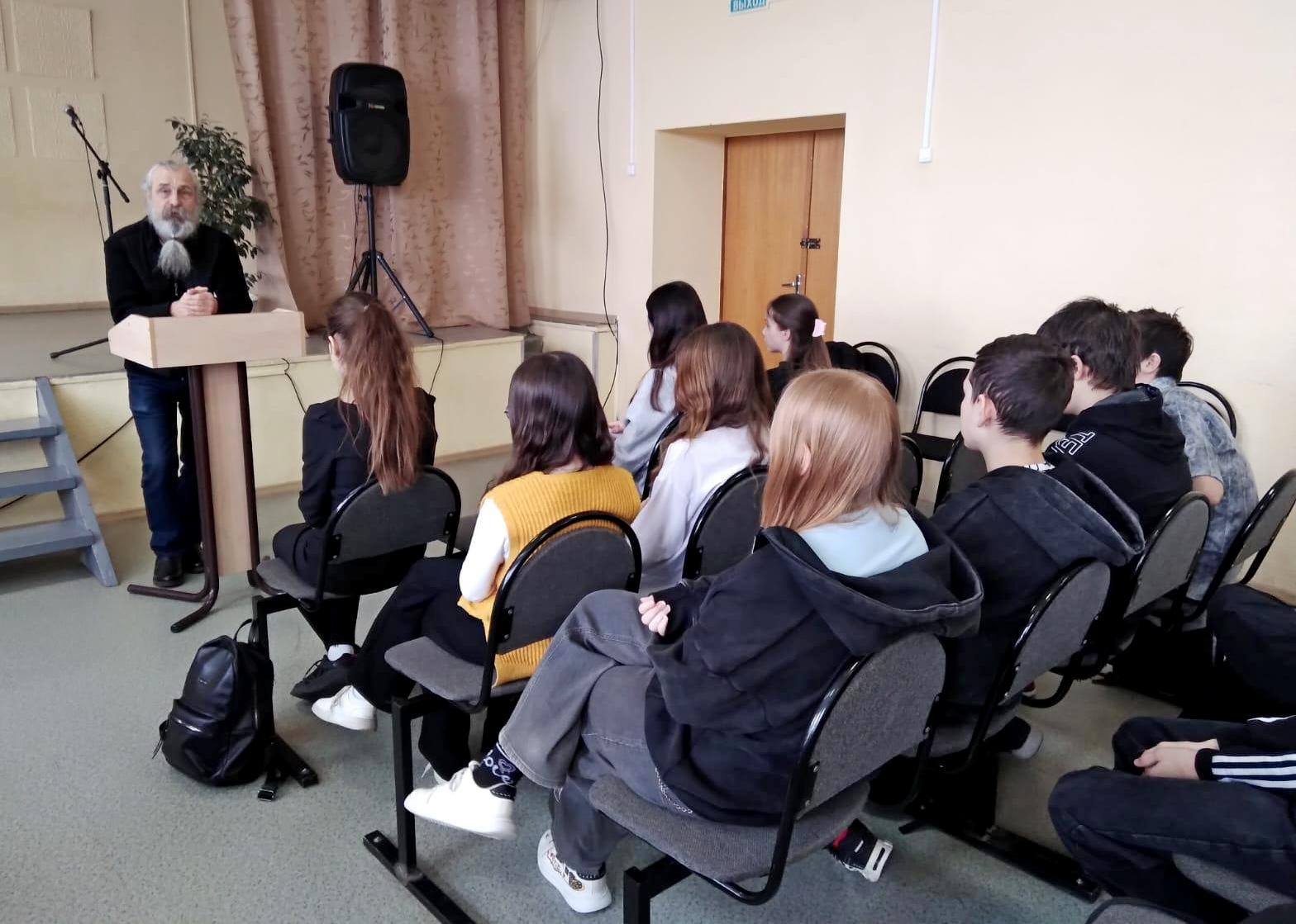 Выпускник школы 1980 года, а сейчас ветеран МВД В. Ю. Шеин поделился с семиклассниками материалами о защитниках Отечества, собранными для очередной его книги. Среди тех выпускников школы, которая носила имя С. М. Кирова, кто участвовал в Великой Отечественной войне, есть и генерал, и офицеры, и рядовые красноармейцы. Судьбы некоторых из них не известны до сих пор, они пропали без вести.