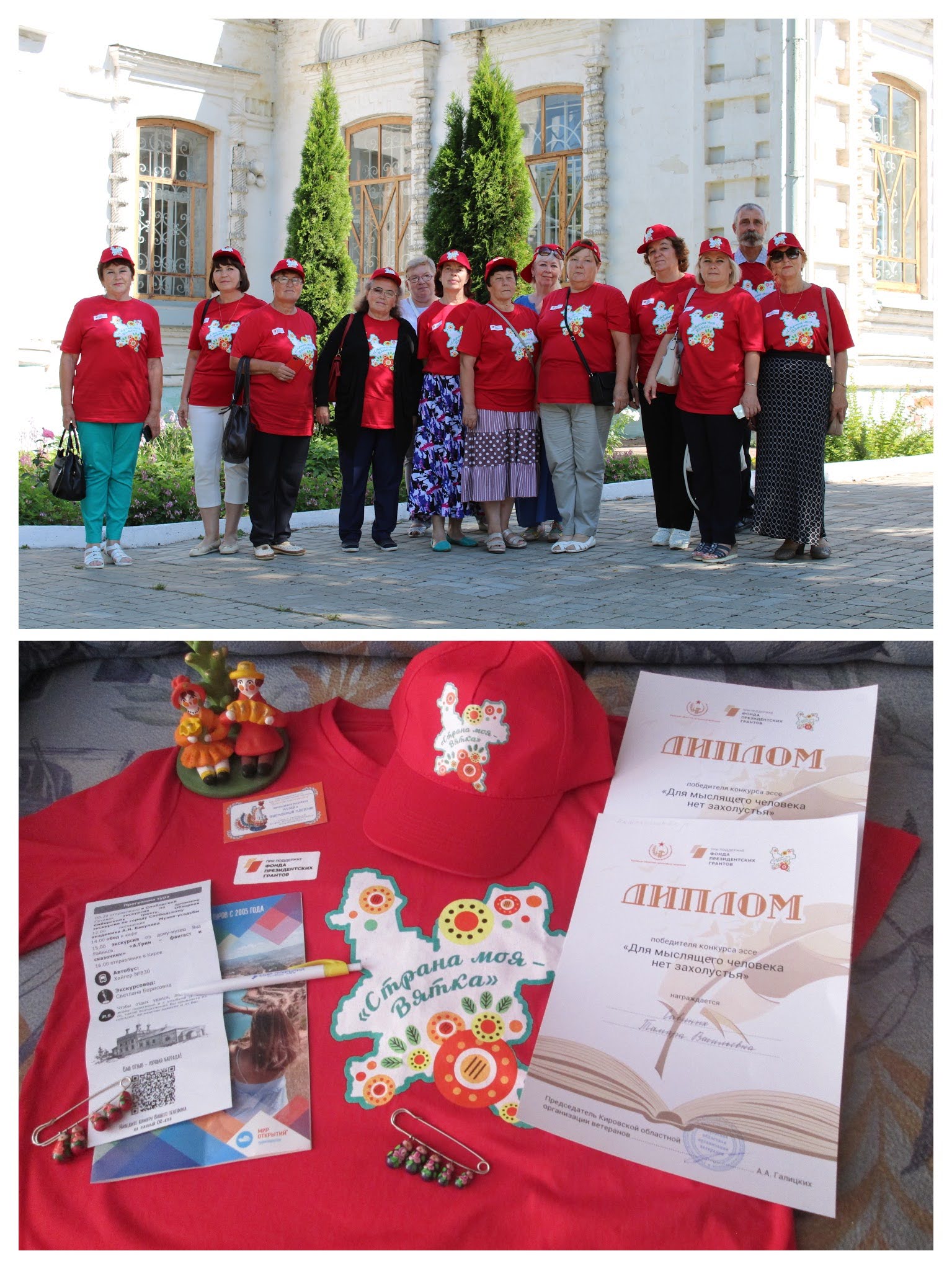 Спасибо Кировской областной организации ветеранов за реализацию прекрасного проекта «Страна моя – Вятка», который позволил, нам, людям «серебряного» возраста, совершить такие удивительные и познавательные поездки. Спасибо за футболки и бейсболки с символикой проекта, за вкусные обеды и праздничные ужины, за предоставление гостиничных номеров и комфортабельных автобусов. Спасибо за прекрасно организованный познавательный отдых!