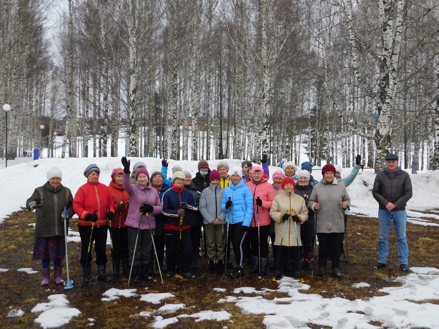 После легкой разминки, проведенной Л.Н. Хариной, руководителем ветеранского клуба «Здоровье», воодушевленные участники отправились по «Маршруту здоровья».