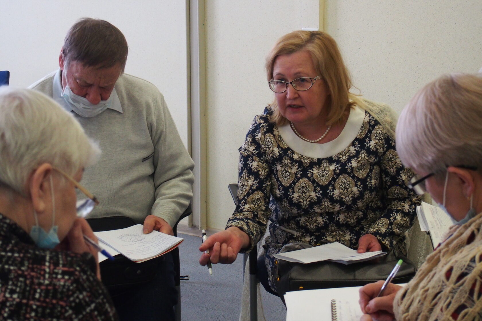 Заместитель председателя Н.И. Никулина рассказала собравшимся о положительных практиках взаимодействия с «серебряными волонтерами» на уровне районных и первичных ветеранских организаций.