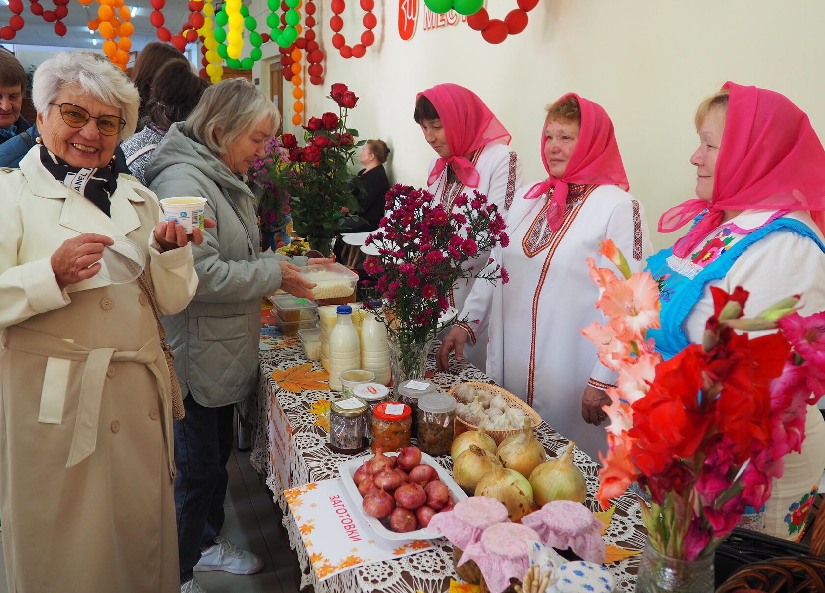 Традиционный смотр-конкурс городских и сельских подворий ветеранов прошёл в Уржуме уже в 13-й раз. В этом году он совпал с «профессиональным» праздником третьей части населения нашего района – Днём пожилых людей. Но старичками и старушками любителей трудится во саду и в огороде участников этого мероприятия назвать трудно. Все увлечены тем, чтобы создавать вокруг красоту, выращивать для себя, для родных и знакомых экологически чистые продукты. Этим могли похвалиться многие участники мероприятия. Например, давно оценив качество «продукции» садов, огородов и подворий байсинцев, пришедшие в культурно-досуговый центр жители Уржума, охотно покупали топлёное масло и козий сыр, молоко и яблоки. У ветеранов из села Петровское на ура шли с «прилавка» фрукты и овощи. Не отставали от коллег и садоводы-огородники из села Русский Турек, которые к дарам природы привезли ещё и местные сувениры. Но продажа экспонатов выставки началась только после того, как по торговым рядам прошли члены жюри. А пока они совещались, прямо в фойе начался небольшой концерт. Богдановский ветеран-гармонист Н.А. Завьялов лихо наяривал на гармошке, подпевали ему женщины «серебряного» возраста из Байсы и Петровского.