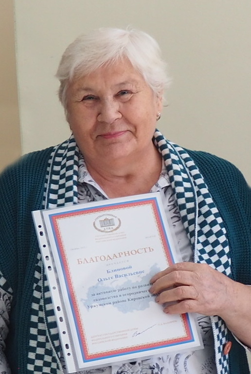 За активную работу по развитию садоводства и огородничества 15 ветеранов района получили награды от председателя Союза садоводов России О.Д. Валенчука. В числе их была и О.В. Блинова из села Русский Турек.