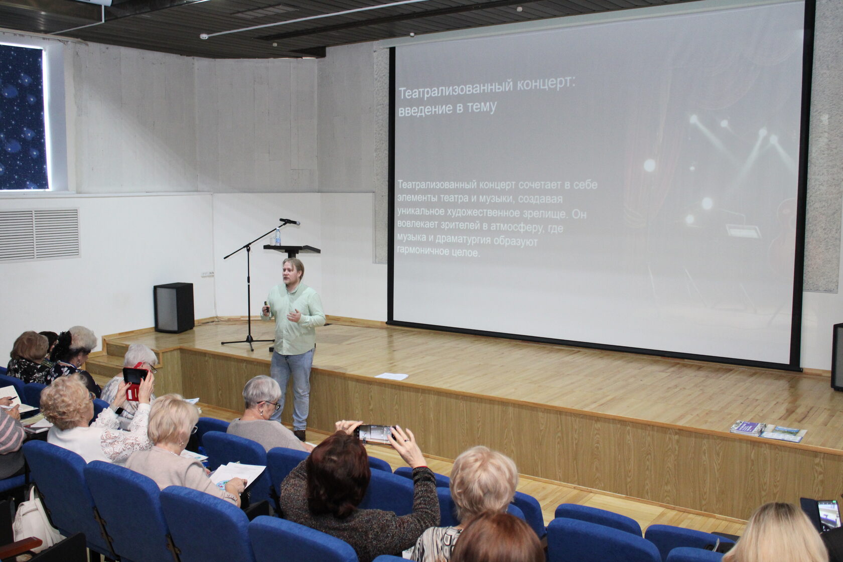 В рамках презентации проекта были названы основные этапы его реализации, конкретные сроки проведения кустовых смотров-конкурсов художественной самодеятельности ветеранских коллективов, программные требования, определены номинации. О принципах организации концертной программы, её содержательной части рассказал Роман Николаевич Шарапов, режиссер Кировского областного Дома народного творчества.