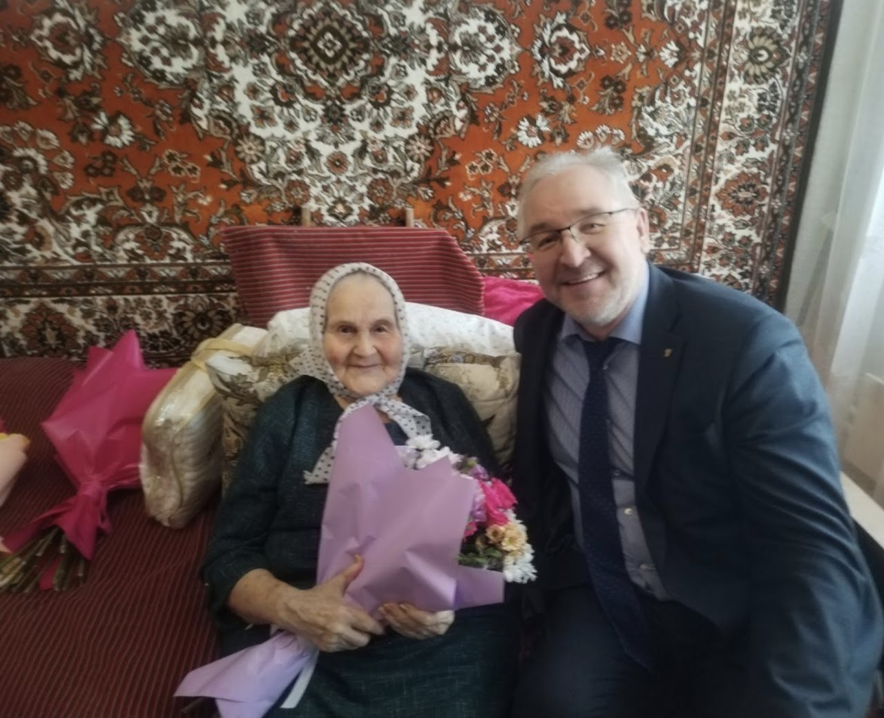 От имени Главы города Елены Васильевны Ковалёвой и от всего депутатского корпуса Лариса Анатольевна Копысова поздравила Марию Леонтьевну с замечательной датой.
