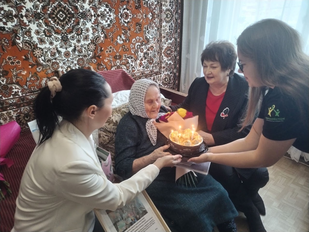Лариса Анатольевна вместе с Сергеем Александровичем Торховым и волонтерами пожелали дорогой Марии Леонтьевне здоровья, благополучия, тепла и заботы близких.