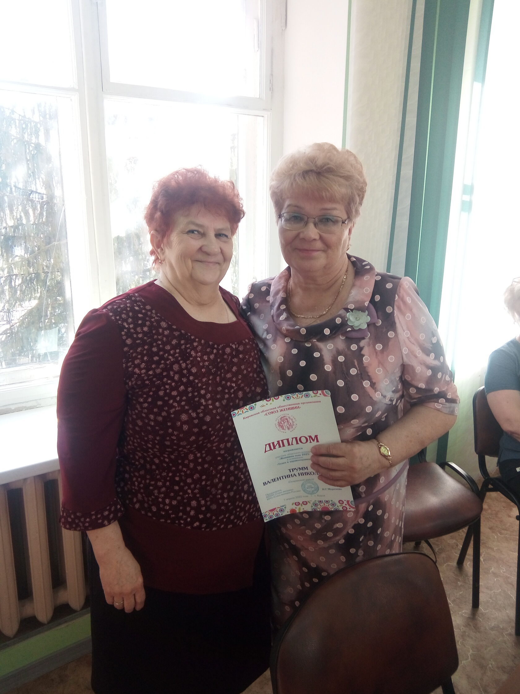 Заместитель главы по социальным вопросам Опаринского муниципального округа Зайцева Светлана Петровна вручила Диплом участника областного конкурса "Женщина года - 2021" в номинации " Успех в здравоохранении» Трумм Валентине Николаевне, председателю первичной организации ветеранов Опаринской районной больницы.