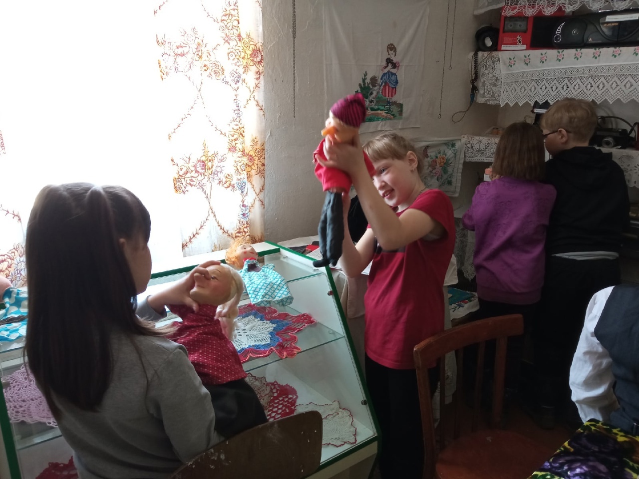 Ученики с интересом рассматривали первые куклы, с которыми играли их сверстники: чурбачок, завернутый в цветную ткань; тряпичную куклу без глаз, пластамассового пупса.