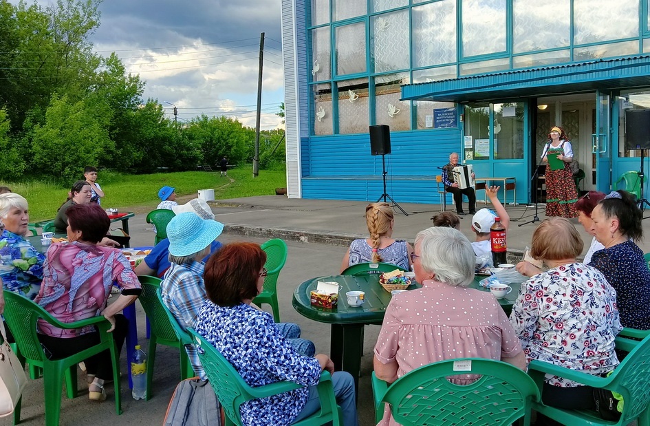 Ведущая программы, Ирина Андреева, проводила игры и конкурсы. Участники пели народные пенсии под баян, аккомпанировал Николай Микрюков, танцевали под звуковое оформление и приняли участие в театральной постановке. За свои успехи они получали сладкие призы, которые были очень кстати к чаепитию.