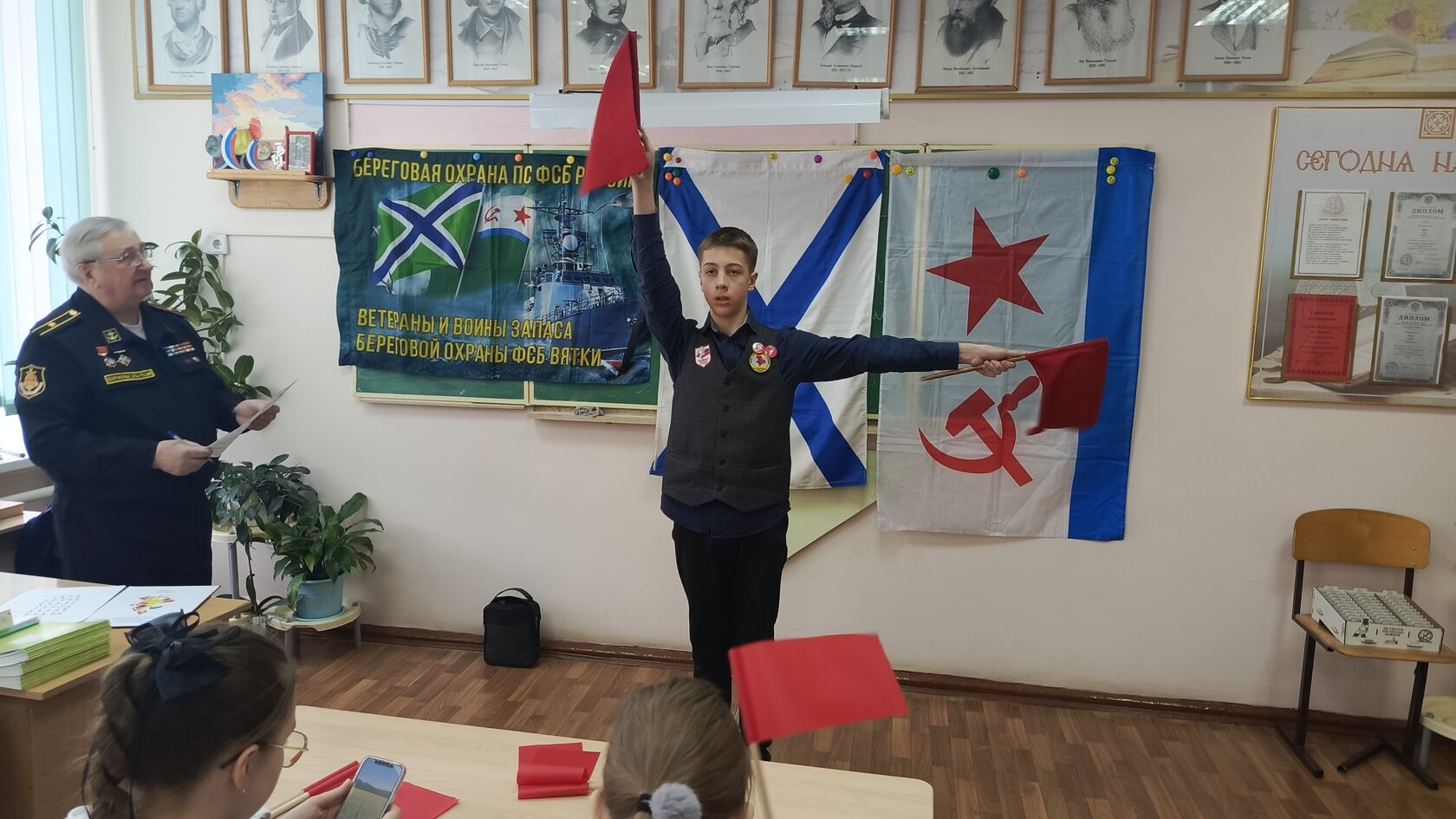 16 февраля в клубе «Юнга» 6 «А» класса Гимназии им. А. Грина г. Кирова состоялись первые соревнования по флажному семафору.
