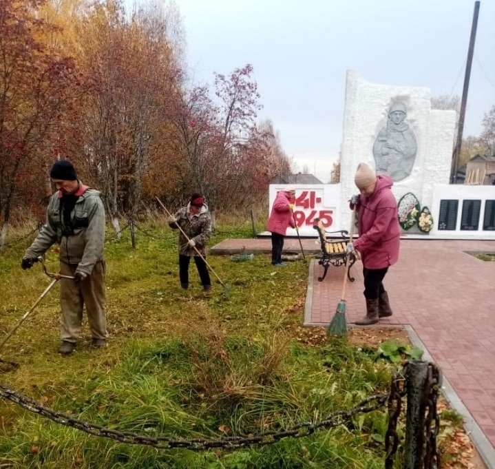 Ветераны первичнойветеранской организации деревни Первые Бобровы Даровского района 10 октября провели очередной субботник по наведению чистоты и порядка в своей любимой деревне. Вооружившисьтриммерами, метлами, граблями ветеранынавели порядок на территории у памятника воинам-землякам, погибшим в годы Великой Отечественной войны и у сельского Дома культуры.