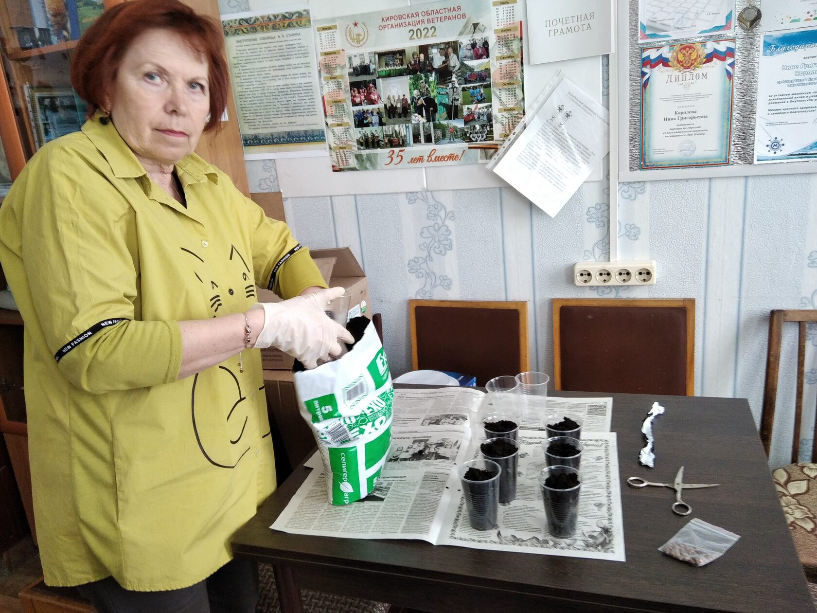 Ветераны Омутнинского района включились в экологический урок «Посади кедр». Семена кедра взяли немного с опозданием в Управлении по физической культуре, спорту, туризму и работе с молодежью. Часть семян отдали городской организации ветеранов. Марина Григорьевна Лекомцева, член районного совета ветеранов, прочитала, как правильно приготовить грунт и посадить семена. 20 апреля в стаканчик было посажено по одному орешку, и нам остается только надеяться, что замечательные сибирские кедры взойдут, будут расти и радовать всех.