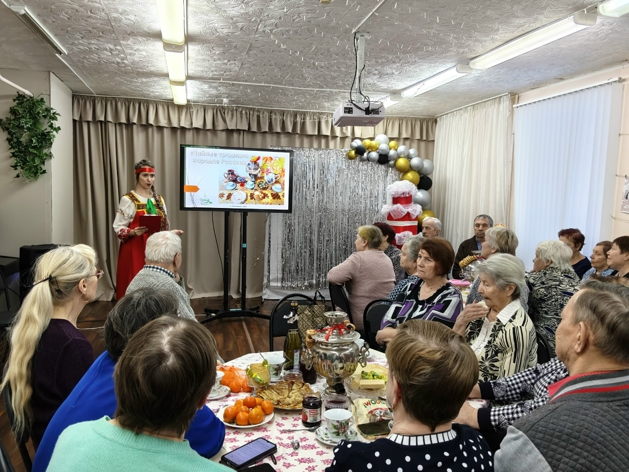 Библиотека имени А. Алейнова пригласила ветеранов-участников клубов и своих читателей на увлекательное путешествие в мир чая и традиций. Мероприятие было посвящено Году единства народов России. Специалисты библиотеки рассказали о тонкостях приготовления травяных чаев, особенностях местных рецептов и символическом значении каждого напитка. Участники узнали много интересного о чайной культуре татарского народа, сибирских старожилов и жителей Кавказа. Каждый гость смог собрать собственную уникальную чайную композицию. После мастер-класса всех ждали вкусные блины и разнообразные виды домашнего варенья, приготовленные специально к масленичной неделе самими участниками клубов.
