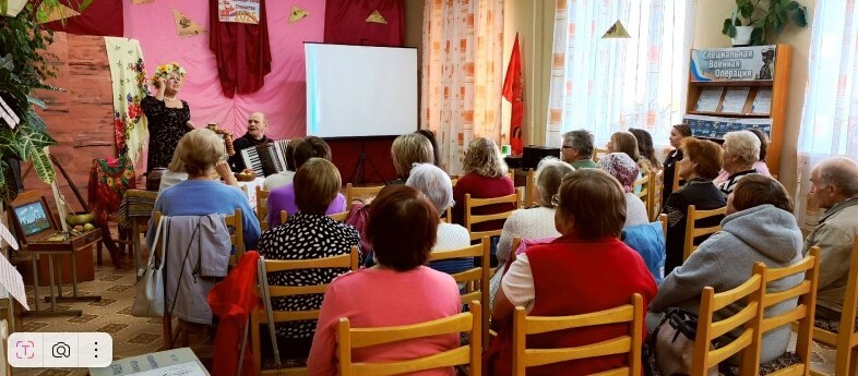 Ветераны, пришедшие в литературную гостиную, узнали, что Александр Владимирович не ограничивался одним видом творчества. Он также прекрасно пел. И мы услышали народные песни из разных мест Кировской области в исполнении ансамбля «Веселинка» Куменского ЦКД.