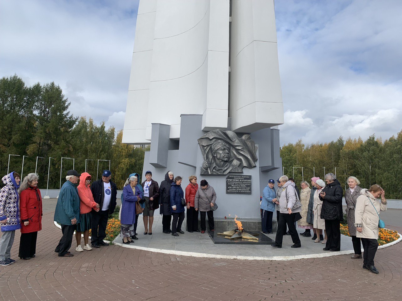 Своим осенним убранством и богатством памятников покорил ветеранов парк Победы.Они с интересом слушали рассказ о подвиге Героя Советского Союза Тимшина Павла Григорьевича, чье имя среди других героев на гранитной памятной плите.