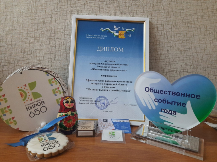 Афанасьевская районная организация ветеранов стала лауреатом регионального конкурса «Общественное событие года», проводимого Общественной палатой Кировской области. Ветераны заявились на конкурс с проектом «На старт вышли и семейные пары». Всего поступило сорок заявок. Было объявлено народное голосование. По итогам экспертного решения членов конкурсной комиссии и по результатам голосования афанасьевцы признаны лауреатами. Это заслуженная награда за вклад в развитие общественной жизни нашего округа. Благодарим всех, кто поддержал наш проект, как социально значимый.
