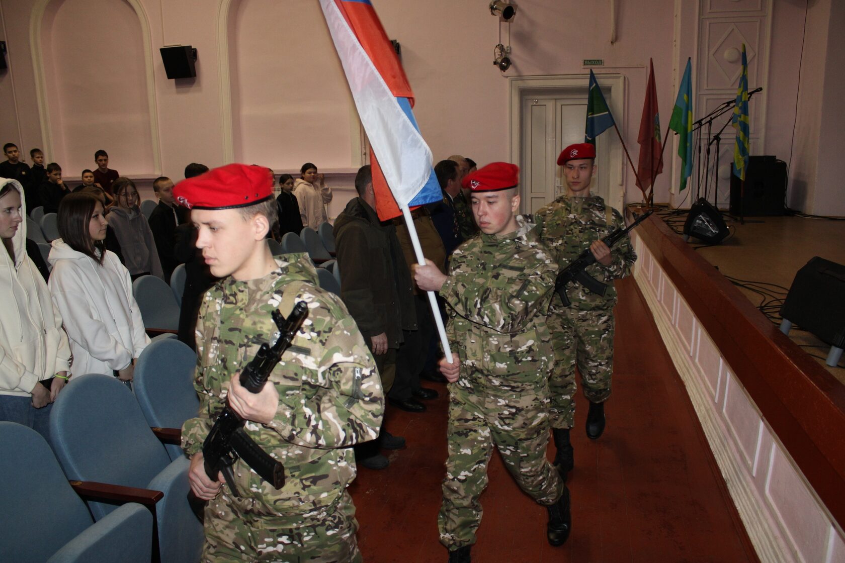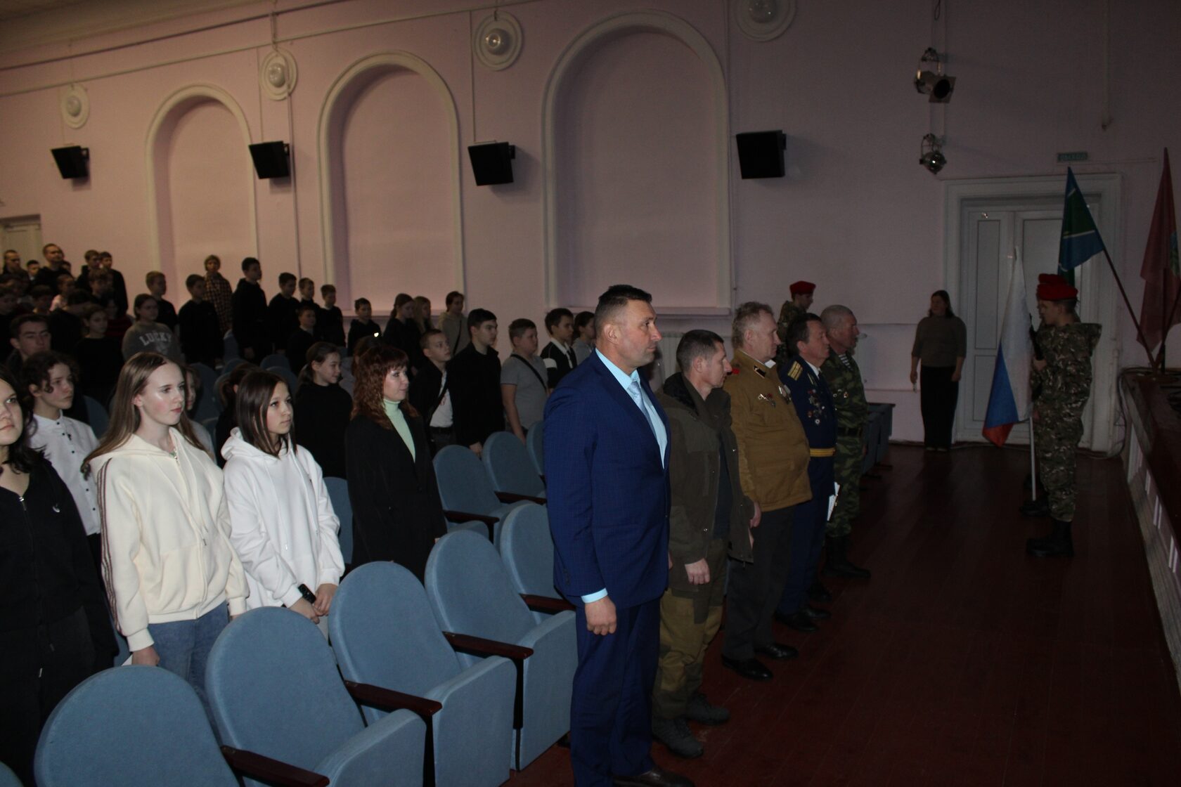 На торжественном мероприятии «Не ради славы и наград», организованном в РДК, и на которое были приглашены учащиеся старших классов и студенты социально-экономического техникума, присутствующим были показаны видеоролики о войне в Афганистане, первой и второй чеченской войне, об СВО.