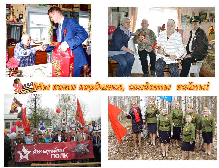 День 9 мая для нас был очень напряжённым, насыщенным разными событиями. С утра почти все жители п. Ленинское вышли на шествие «Бессмертного полка». Такой многочисленной колонны у нас никогда не было. По сложившейся традиции первыми в колонне шли ветераны. После торжественного митинга возложили венки, и глава района А.Е. Рогожников со специалистом по соц. работе, фотокорреспондентом и представителем от нашей ветеранской организации поехали к участникам Великой Отечественной войны. Их у нас осталось двое. Поздравили, вручили подарки, поговорили. В этот день во всех поселениях прошли концерты, где главными участниками были коллективы ветеранов. А наш коллектив районного клуба ветеранов поехал в малую деревню Чахловка, где мы показали им небольшую композицию на военную тему, поговорили с жителями, попели с ними под баян военные песни. Все остались довольны таким общением в святой для всех день.