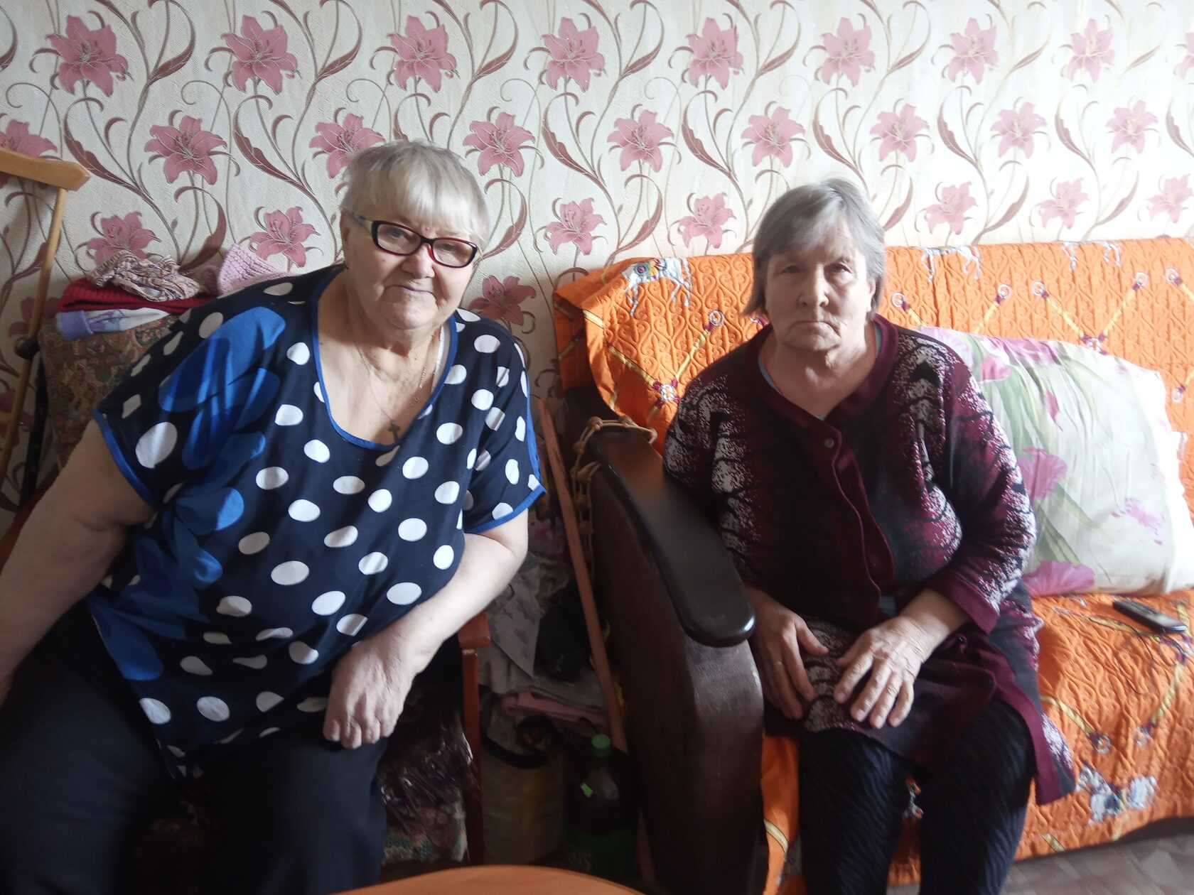 Пока Любовь Дмитриевна ходила в соседнюю квартиру к Малышевой Клавдии Алексеевне, я общалась с женщинами. Сестры Надежда и Валентина рассказали о своей родной деревне Кисели, многодетной семье, трудной послевоенной жизни. Они согласились снова встретиться, посмотреть сохранившиеся фото родных и записать воспоминания. Хотя у нас были большие опасения, что не примут предложение. А с замечательной помощницей Валентиной Ивановной Вахриной я была знакома давно, она родом из Куменского района. Вручили женщинам фрукты и печенье к чаю. Надежда Николаевна и Валентина Ивановна согласились сделать фото.