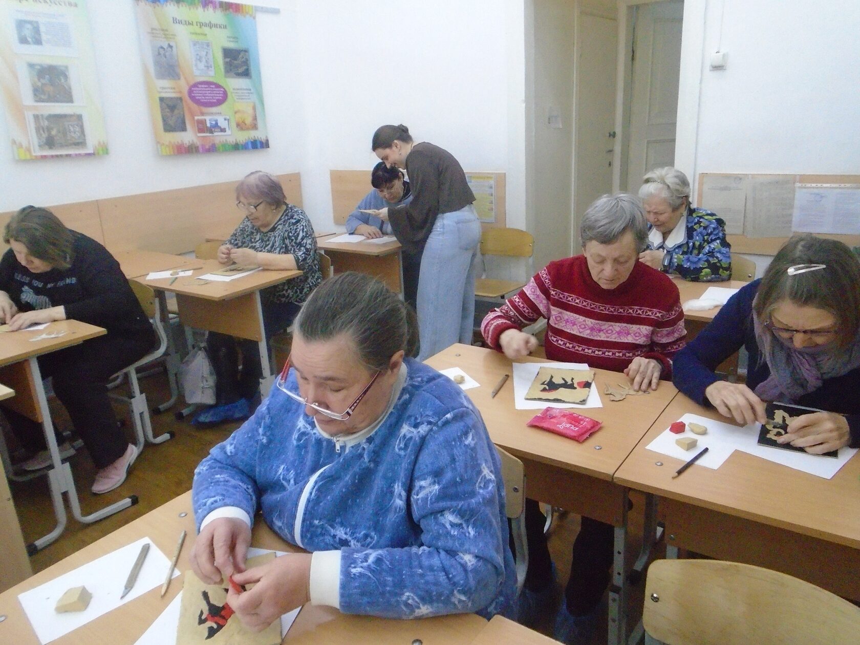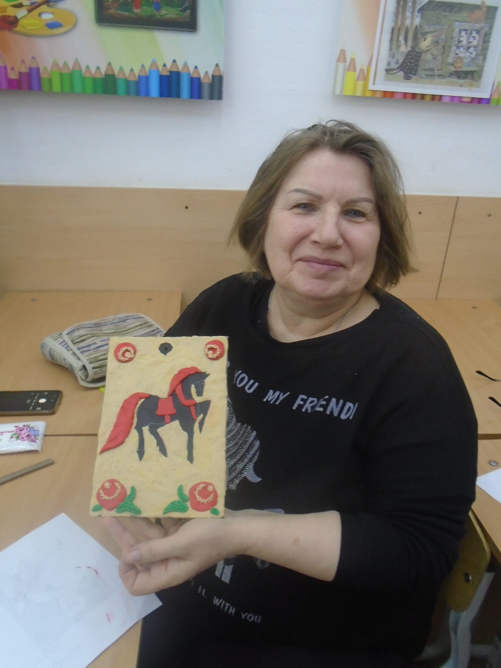29 января слободские ветераны по приглашению Детской художественной школы города побывали на мастер-классе по пластилинографии «Городецкие мотивы», который провела преподаватель Чуйкова Д.В.