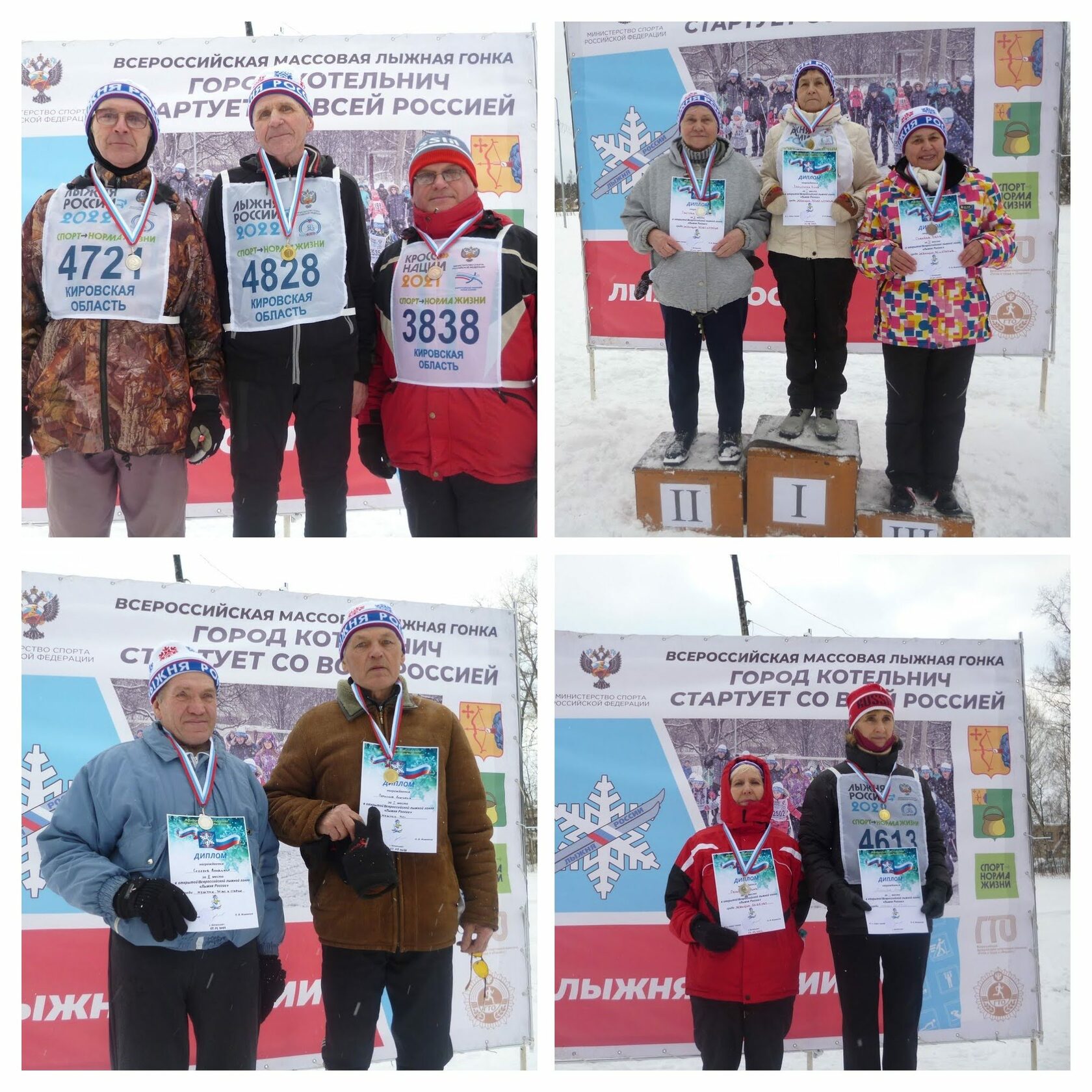 Помимо массового старта состоялись ветеранский и семейный забеги, а также старты по возрастным категориям. Большинство пенсионеров являются постоянными участниками всероссийской лыжной гонки. Среди них и Любовь Николаевна Козлова – самая возрастная лыжница – ей 80 с половиной лет! Дистанцию в полкилометра преодолела спокойно, бодро, с настроением. Она почти каждый день встаёт на лыжи, гуляя в Миршине (есть такой природный уголок для прогулок в Котельниче). И, конечно, в каждом забеге были свои чемпионы и призёры.