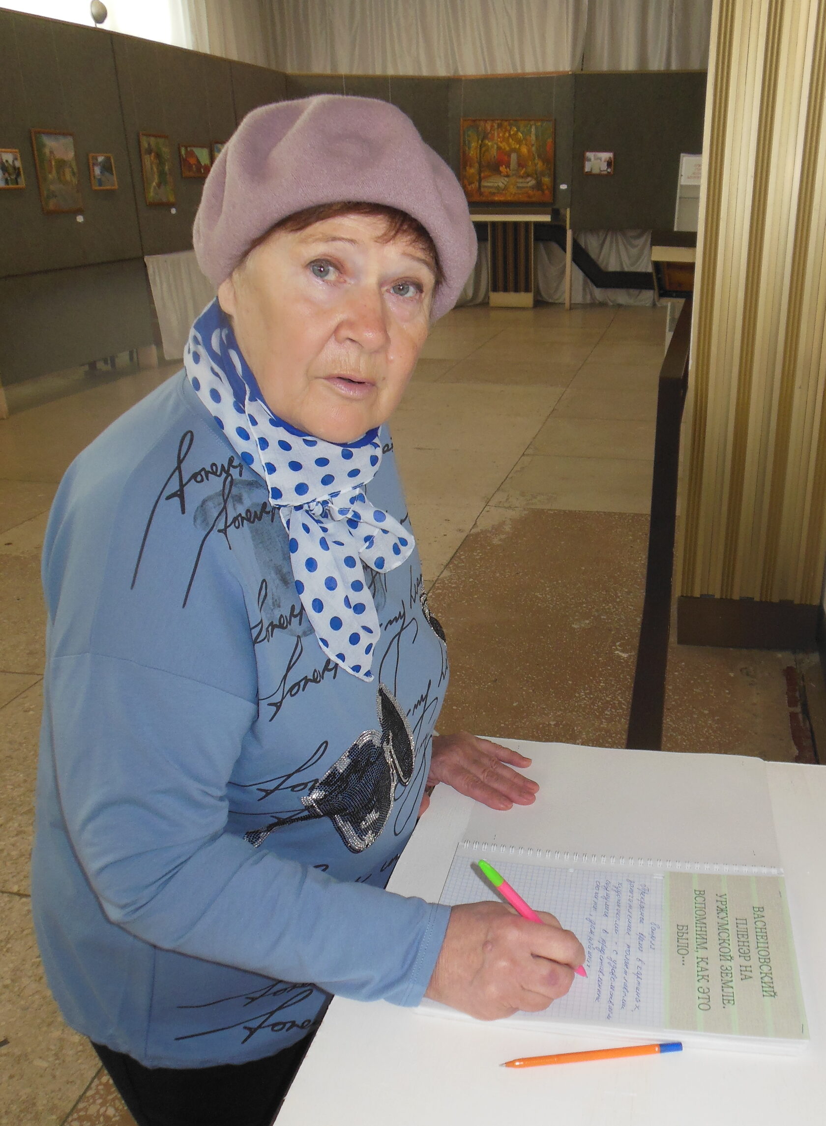 Десятки работ маститых художников разных возрастов и почётных званий просмотрели на днях ветераны-активисты. На фотографиях с тех самых пленэров, дополняющих выставку картин, нашли себя и своих знакомых, обсудили увиденное, вспомнили те прекрасные дни, которые не забылись и спустя годы. На память они сфотографировались у замечательной картины земляка, заслуженного художника Российской Федерации Александра Ивановича Веприкова, которая была подарена им уржумцам несколько лет назад. Одна из любительниц живописи – Л.С. Кожевникова, оставили в книге восторженный отзыв: «Прекрасное время в картинах, запечатлённое талантливыми художниками. С удовольствием окунулись в представленные сюжеты...».