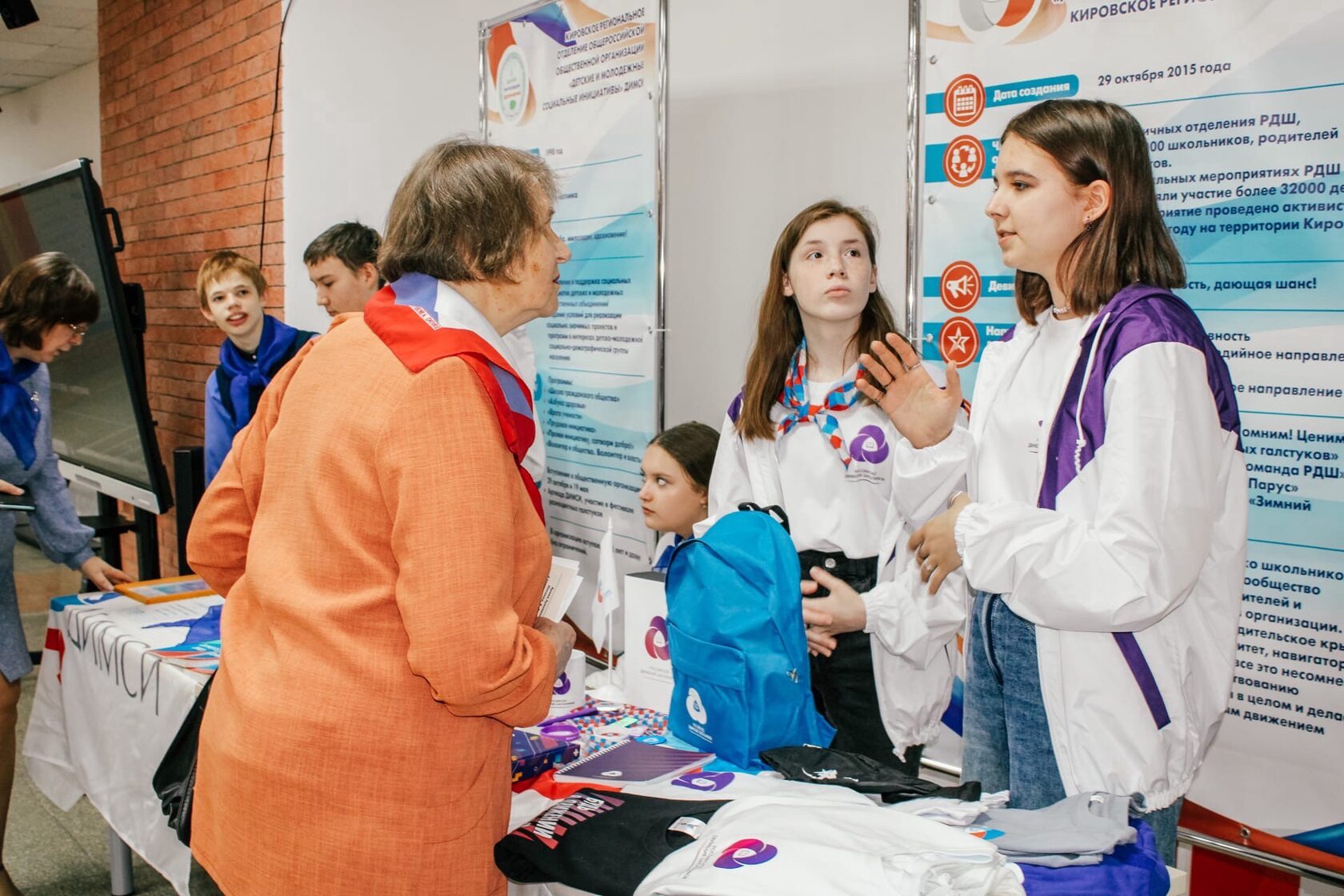 Особенностью выставки стала презентация современных детских организаций области: «Российское движение школьников», «ЮНАРМИЯ», «Юность Вятского края», «ЮКОНА», «Новая волна», «Лига юных журналистов», «Детские и молодёжные социальные инициативы (ДИМСИ)». С нынешними активистами мы познакомились и подружились! А еще все вместе спели Гимн пионеров!