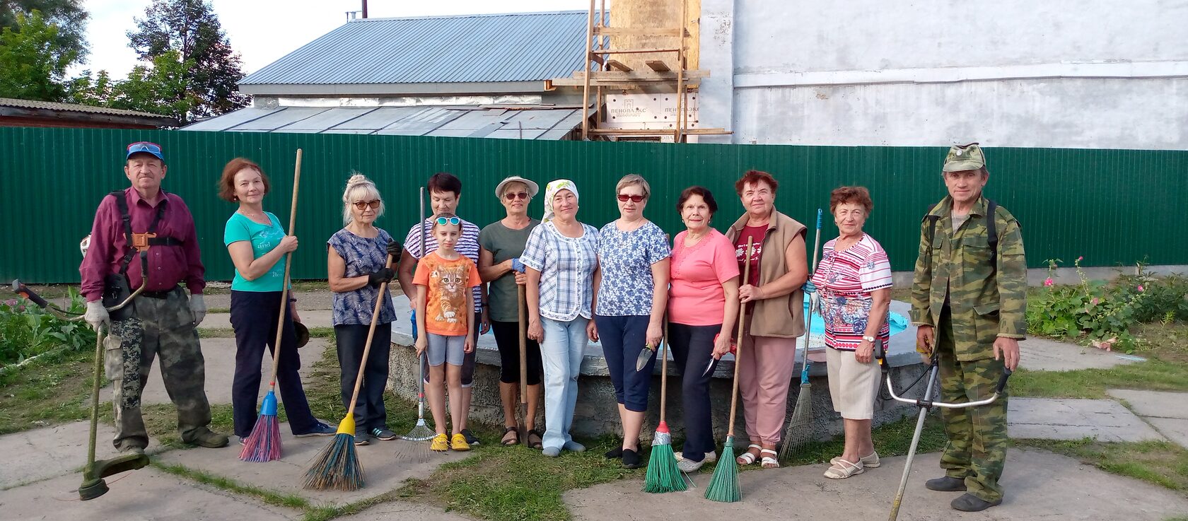 Ветераны поработали на славу – прополота сорная трава на клумбах, собран мусор, скошены газоны, подметены дорожки. Территория преобразилась и стала радовать глаз своим ухоженным видом.