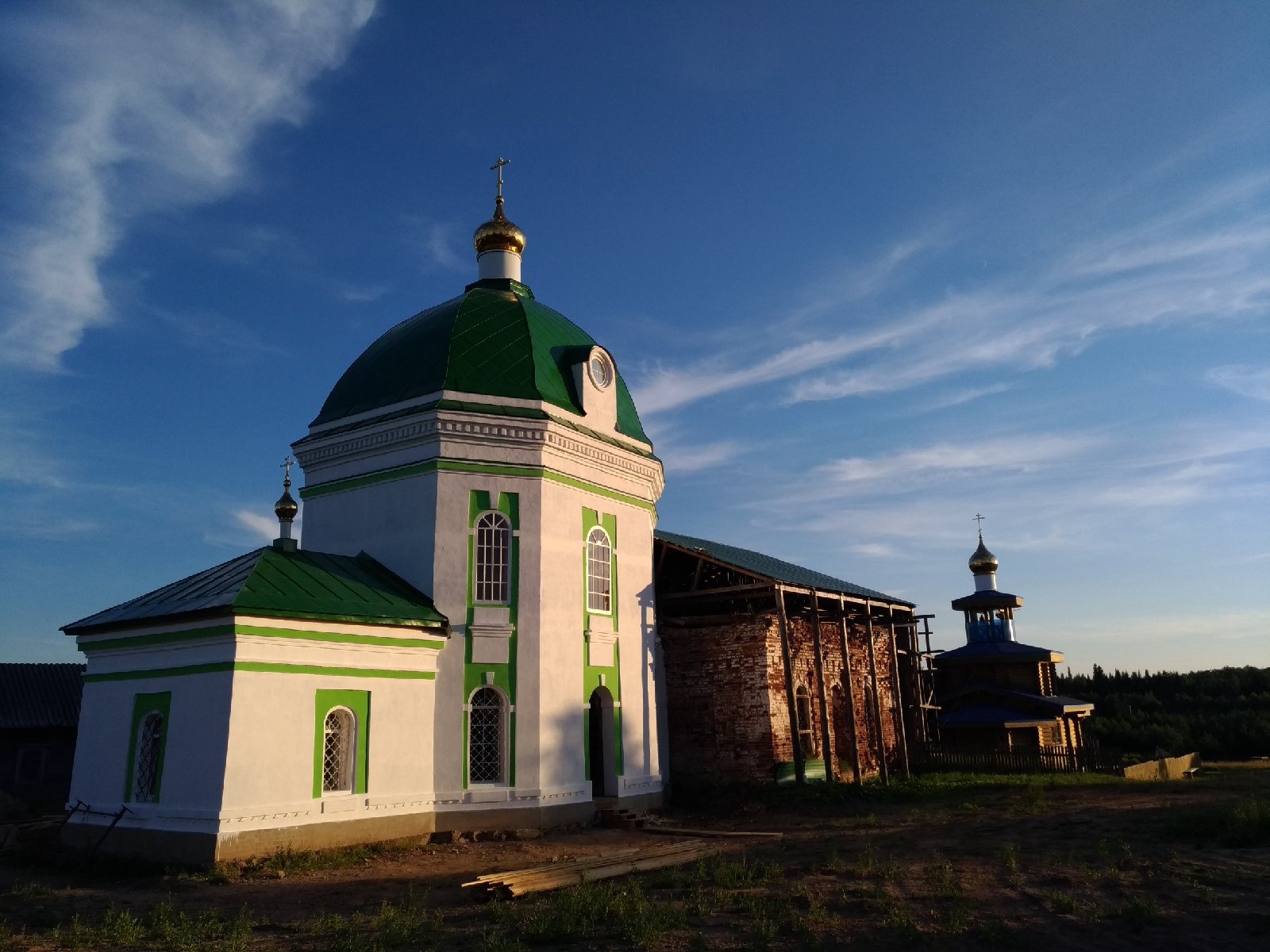 Страстная седмица – это время, когда Господь идёт навстречу нам. А мы спешим в церковь, чтобы помолиться за мир, за правду, за веру нашу православную. Как хорошо, что в Троице есть Храм! И всегда был, со времени основания Троицкого Холуницко-Верховятского мужского монастыря (пустыни), что относится к 1591 году. Да только люди не всегда храм этот берегли. Из истории церкви известно, что построена она была в 1808 году, после сгоревшей деревянной. Имела два Престола: холодный храм во имя Святой Живоначальной Троицы и тёплый во имя трёх святителей - Василия Великого, Григория Богослова и Иоанна Златоустого. В годы советской власти церковь была закрыта и использовалась в 1930-40-е годы для показа кинофильмов и как пересыльный пункт для спецпоселенцев, в 1960-70-е - как колхозный склад. Позже начала разрушаться. И только с 2010 года, после возведения в селе деревянной часовни «Во имя Пресвятой Троицы», церковная жизнь понемногу стала налаживаться, и с 2013 года было принято решение о восстановлении старинной церкви. Обо всём этом можно прочитать в фотолетописи Прихода Святой Троицы и в книге Николая Васильевича Шуплецова «Село над Холуницей», а также на сайтах «Родная Вятка» и Белохолуницкий краеведческий музей. Для восстановления разрушенной церкви требуются большие финансовые вложения. С Божией помощью нашлись добрые люди, которые помогают. А ещё каждый год проходят субботники по расчистке храмовой территории и уборке внутри церкви. И церковь обновляется. И службы в День Святой Троицы всегда идут в старинном Храме.