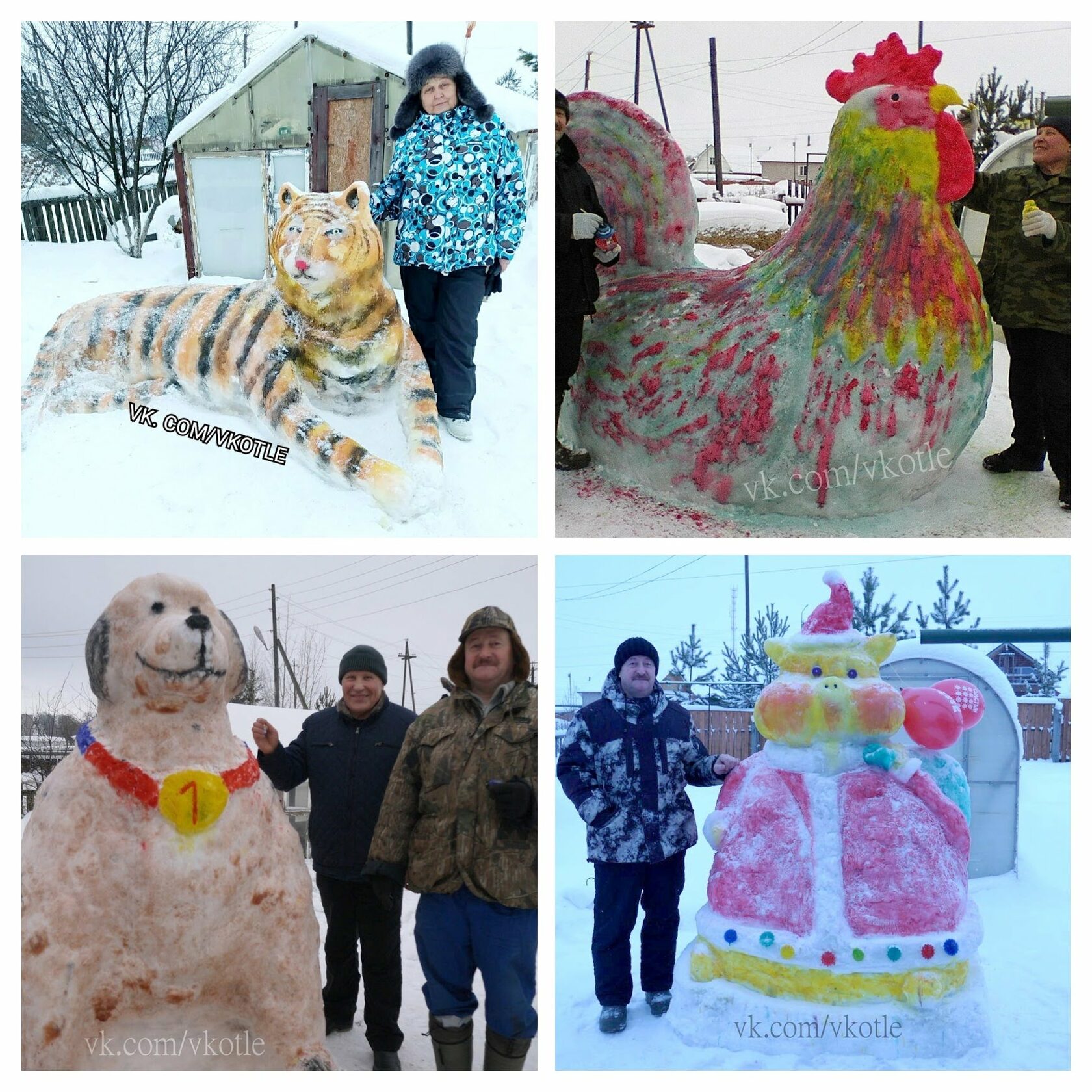 Семья котельничан Блиновых Владимира Васильевича (профсоюзного лидера Западных электросетей) и Людмилы Николаевны (педагога школы № 5) ежегодно с помощью соседей создают снежные фигуры на радость окружающим…