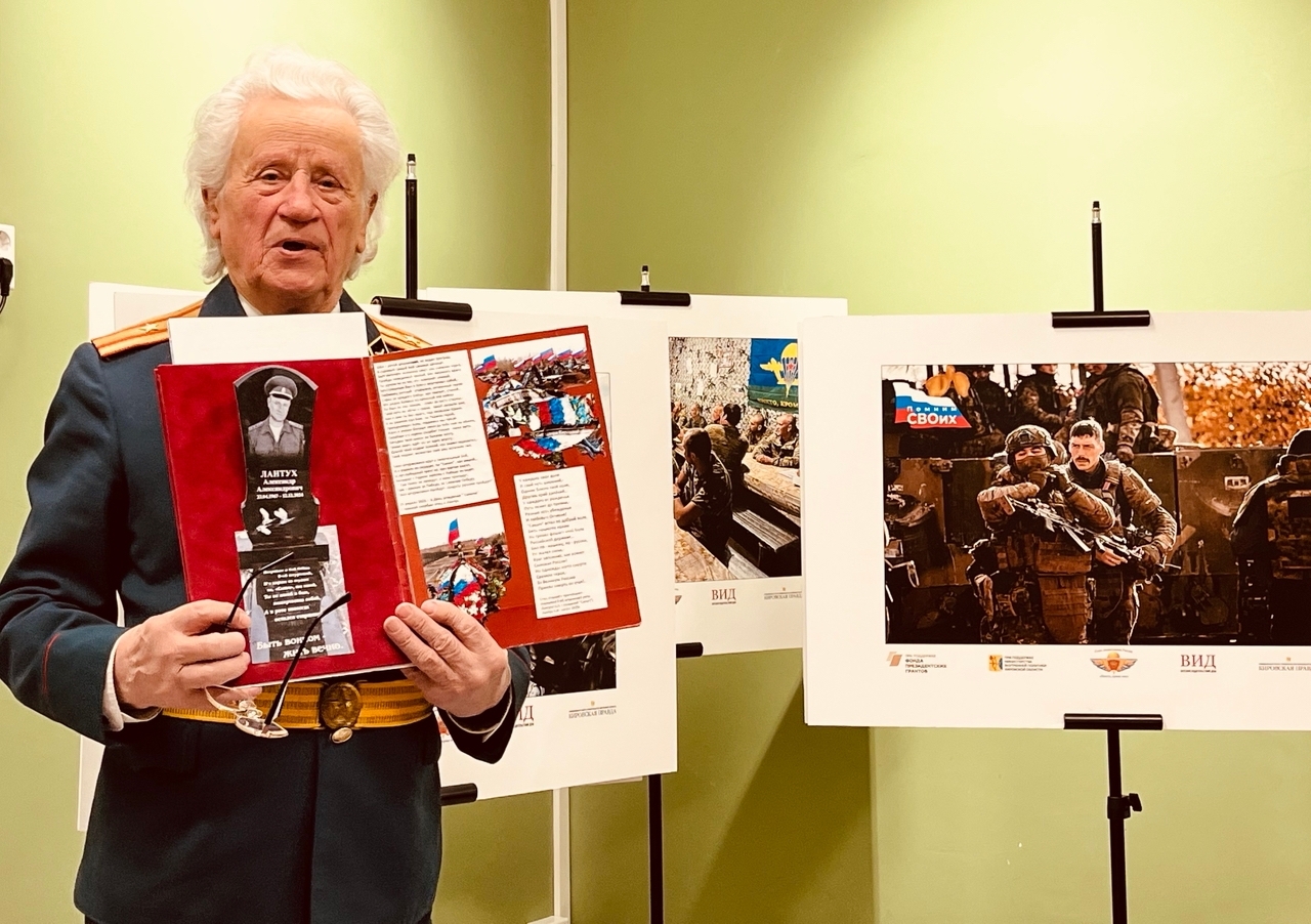 Казакова Надежда Александровна – куратор выставки, главный редактор газеты «Слободские куранты», рассказала, что проект «Помним СВОих» реализуется КООО «Союз десантников» – победителем регионального грантового конкурса 2025 года при поддержке Фонда президентских грантов и информационного партнёра проекта «Вятский издательский дом».