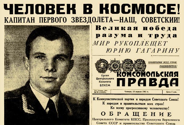- 9 час 52 мин. По полученным данным с борта космического корабля «Восток» пилот-космонавт Гагарин Ю.А., находясь над Южной Америкой, передал: «Полет проходит нормально, чувствую себя хорошо».