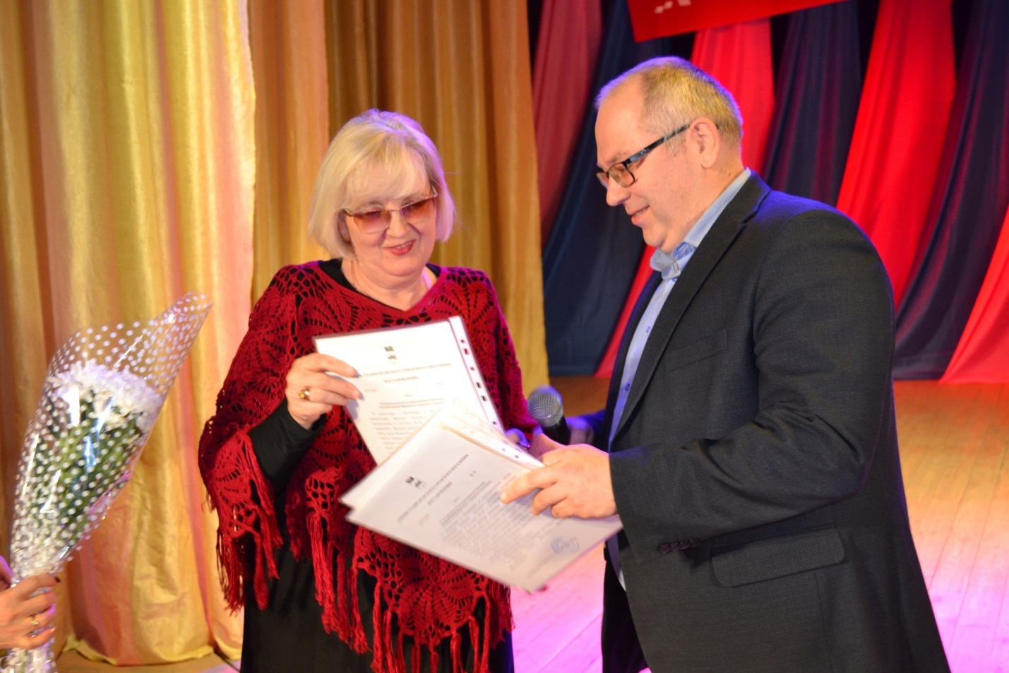 Вторая часть праздника - поздравления, награждения, вручение цветов и подарков. К участникам мероприятия обратились глава района А.А.Трушкова, глава администрации городского поселения Зыков Н.Н., помощник депутата Государственной Думы О.Д. Валенчука - Кузнецов А.Н., руководители учреждений, социальные партнеры и др.