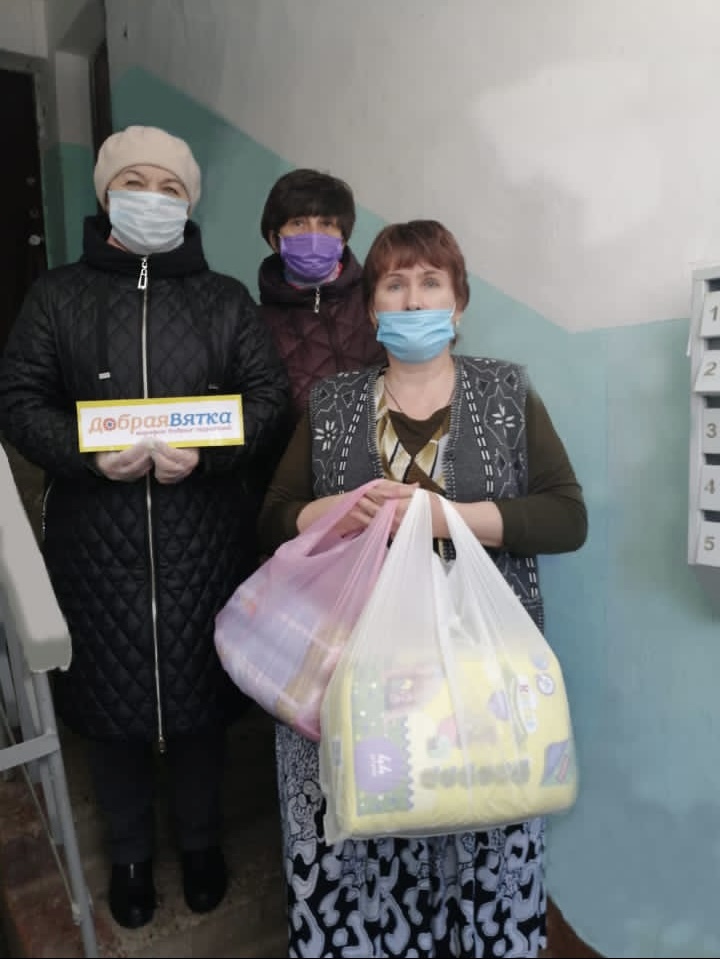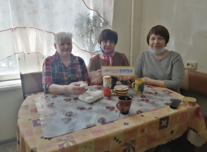 В рамках акции члены ветеранской организации: Шипицына Марина Геннадьевна, Пивоварова Ю.А. и волонтёр Пивоварова Ю.Э. посетили Долгополову Марию Александровну, ветерана войны (96 лет) и Голубеву Марию Геннадьевну, которая живет одна, воспитывает двоих внуков. Женщинам были переданы продуктовые наборы, а за чашкой чая состоялся душевный разговор.