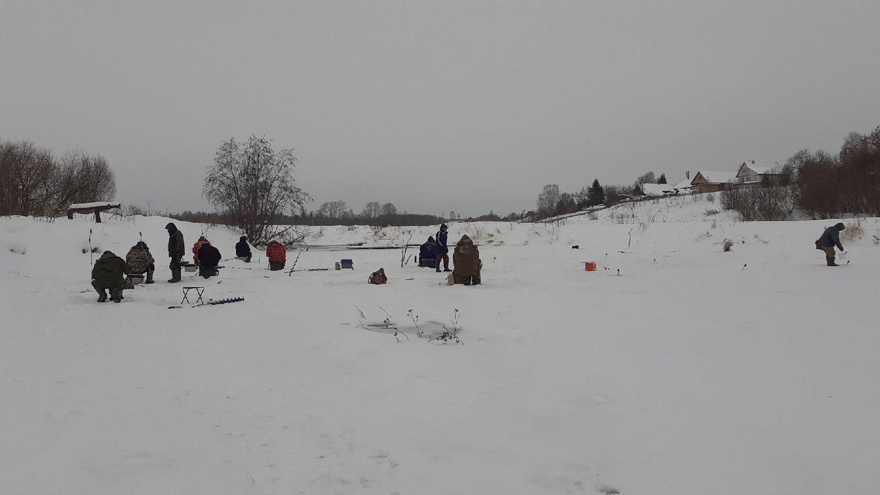 Еще издалека, подъезжая к мосту через реку Куменку, мы увидели рыбаков на льду. Их было 12 человек в одной группе, еще несколько - в другой группе. На мой вопрос: «Это соревнования?», водитель ответил: «Нет – это состояние души». В пути он увлеченно рассказывал о рыбалке и рыбаках, хотя сам к категории рыбаков не относился.