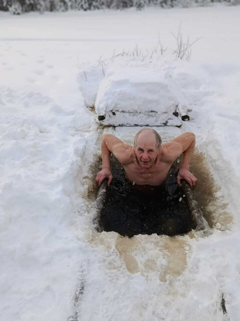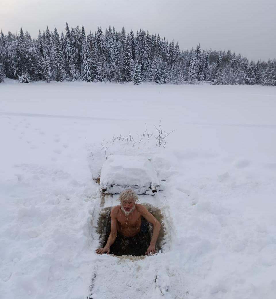 После бодрящей пробежки, разминки, расчистки снега у проруби (а в крепкие морозы и топориком приходится поработать, вырубая образовавшийся за ночь лед), они без страха ныряют в прорубь, чтобы получить мощный заряд бодрости.