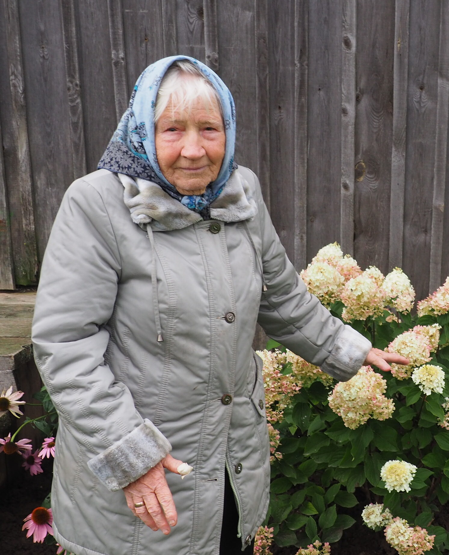 Но, несмотря на первые дни осени, в палисаднике и во дворе ещё радовали хозяйку своим цветением гортензии и эхинацея, которую цветовод, не приемля иностранные названия, по-простому именует ромашками.