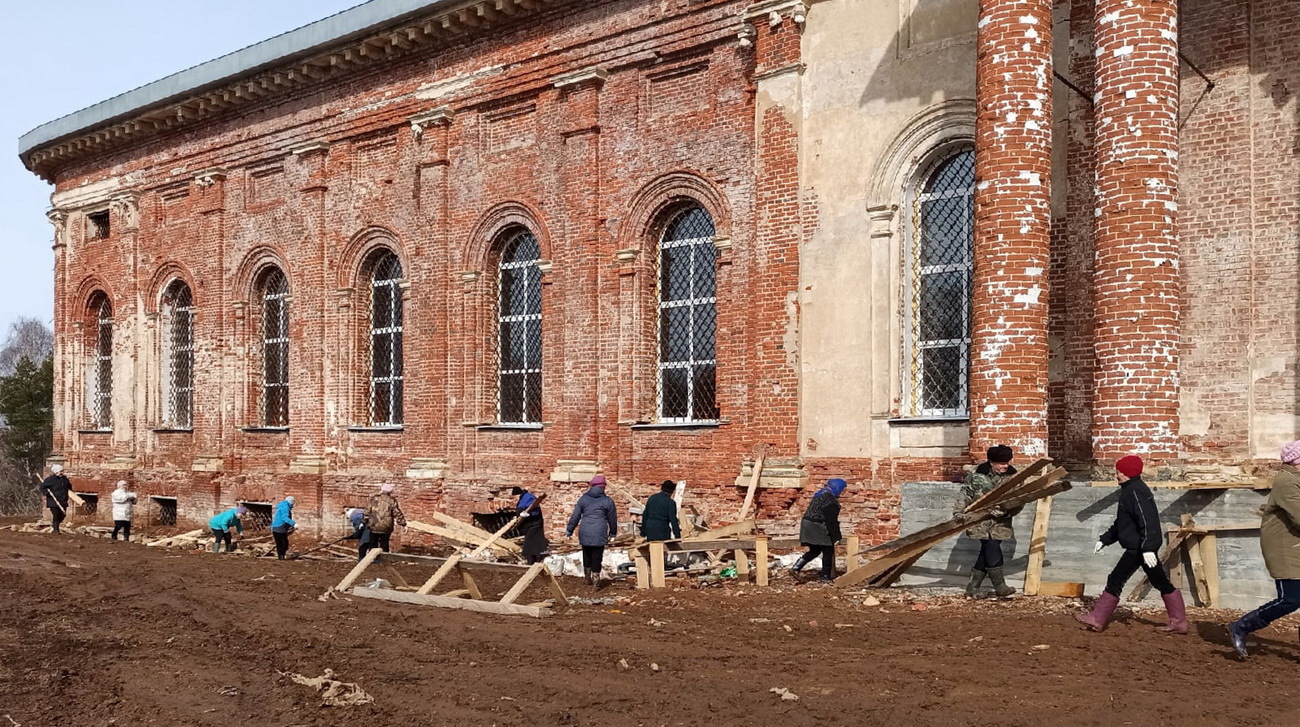 На субботник пришли три десятка человек. Это первый в этом году субботник. Работали дружно, с огоньком! Мужчины сделали лестницу, чтобы удобно было подниматься на вновь бетонированное крыльцо. Убрали строительные отходы по всему периметру здания церкви: хорошие доски, оставшиеся от кровли, сложили под укрытие, а всё остальное убрали в определённое место.