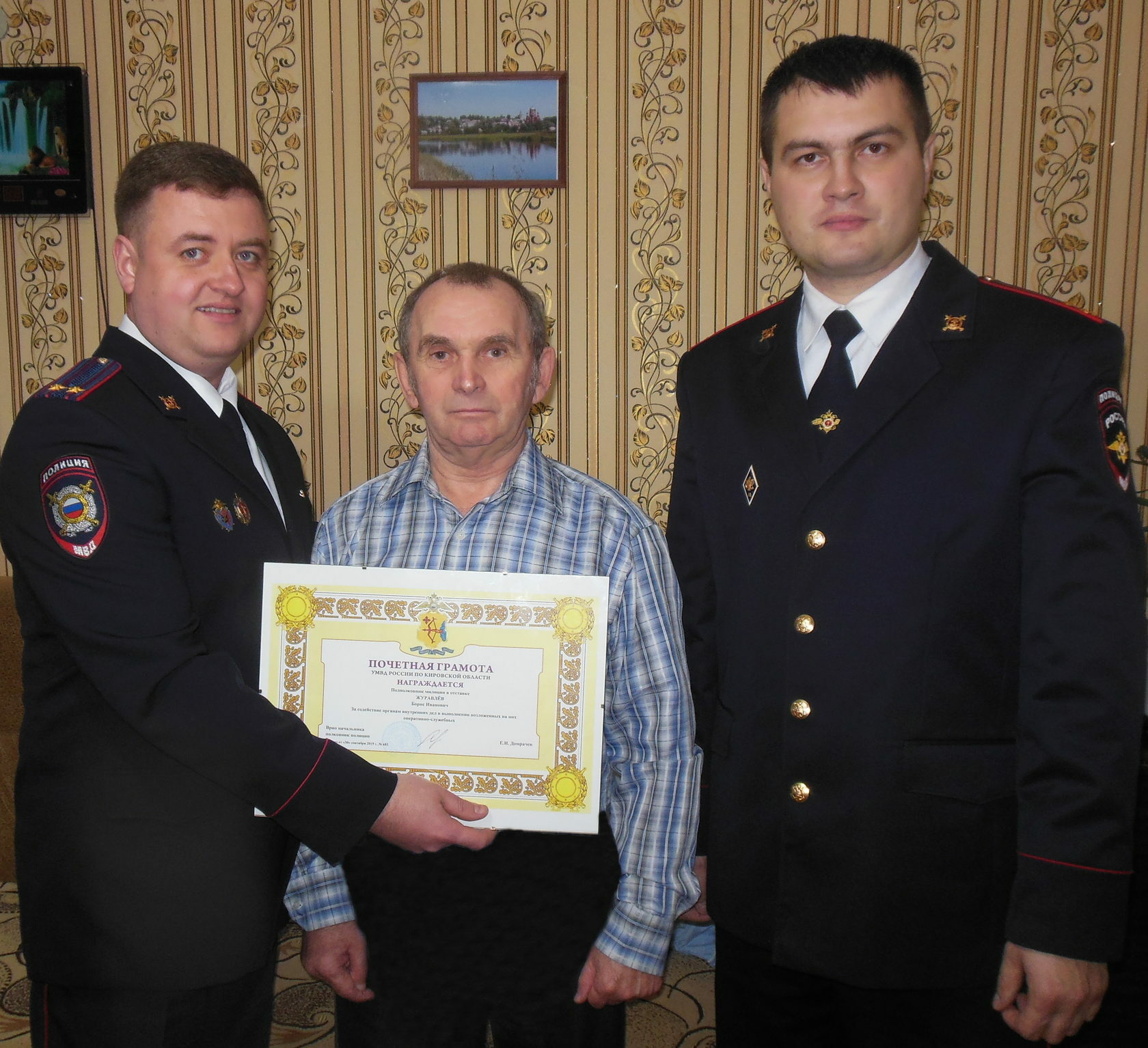 За содействие органам внутренних дел в выполнении возложенных на них оперативно-служебных задач Почётными грамотами УМВД России по Кировской области были награждены активные участники районного ветеранского движения, члены Общественного совета, созданного при ОМВД России по Уржумскому району подполковник милиции в отставке Борис Иванович Журавлёв, майоры милиции в отставке Светлана Николаевна Архипова и Владимир Юрьевич Шеин.