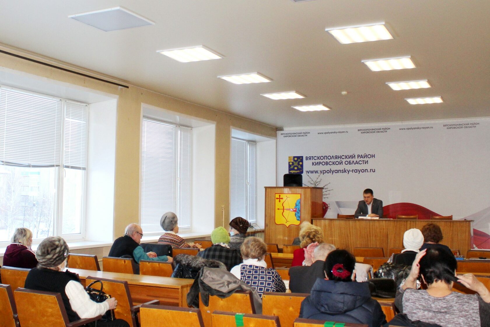 12 января 2022 года в зале заседаний администрации Вятскополянского района состоялась встреча главы Вятскополянского района А.Ю. Чернова с представителями Совета ветеранов. Андрей Юрьевич выступил с докладом о своей работе и работе администрации района по предварительным итогам 2021 года, а также о планах развития на 2022 год. В своем выступлении глава района подробно рассказал о мероприятиях, проводимых в 2021 году, о достигнутых успехах в сельском хозяйстве, инвестициях, промышленности, культуре, молодежной политике, спорте, ремонте дорог, водоснабжении, газификации территории, в сфере здравоохранения и других. Также присутствующие обсудили проблемы и общие ситуации, которые стоят на сегодняшний день на территории района.