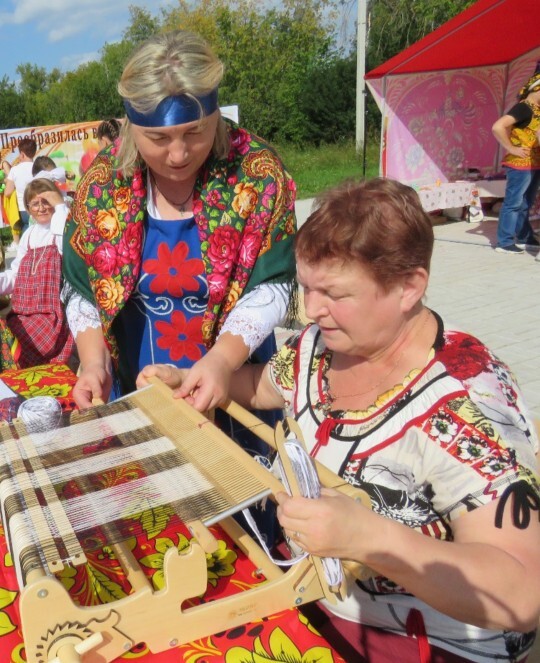 На ручных ткацких станках демонстрировали и создавали тканые изделия :мини-половички, салфетки, сувенирные подушечки, сумки и многое другое. На празднике всем желающим дали возможность попробовать себя в этом увлекательном занятии.