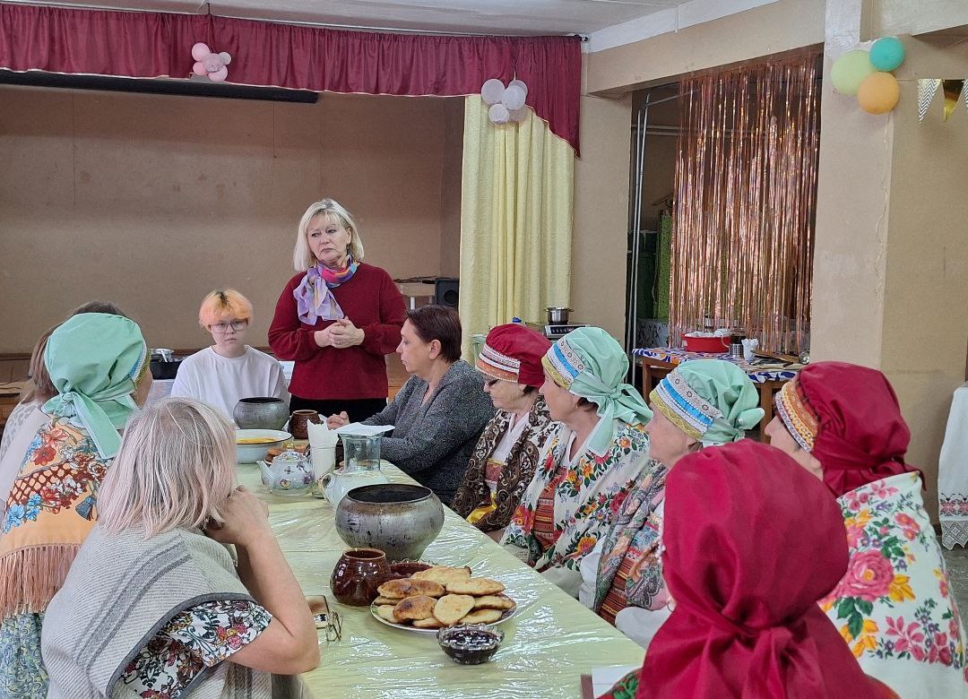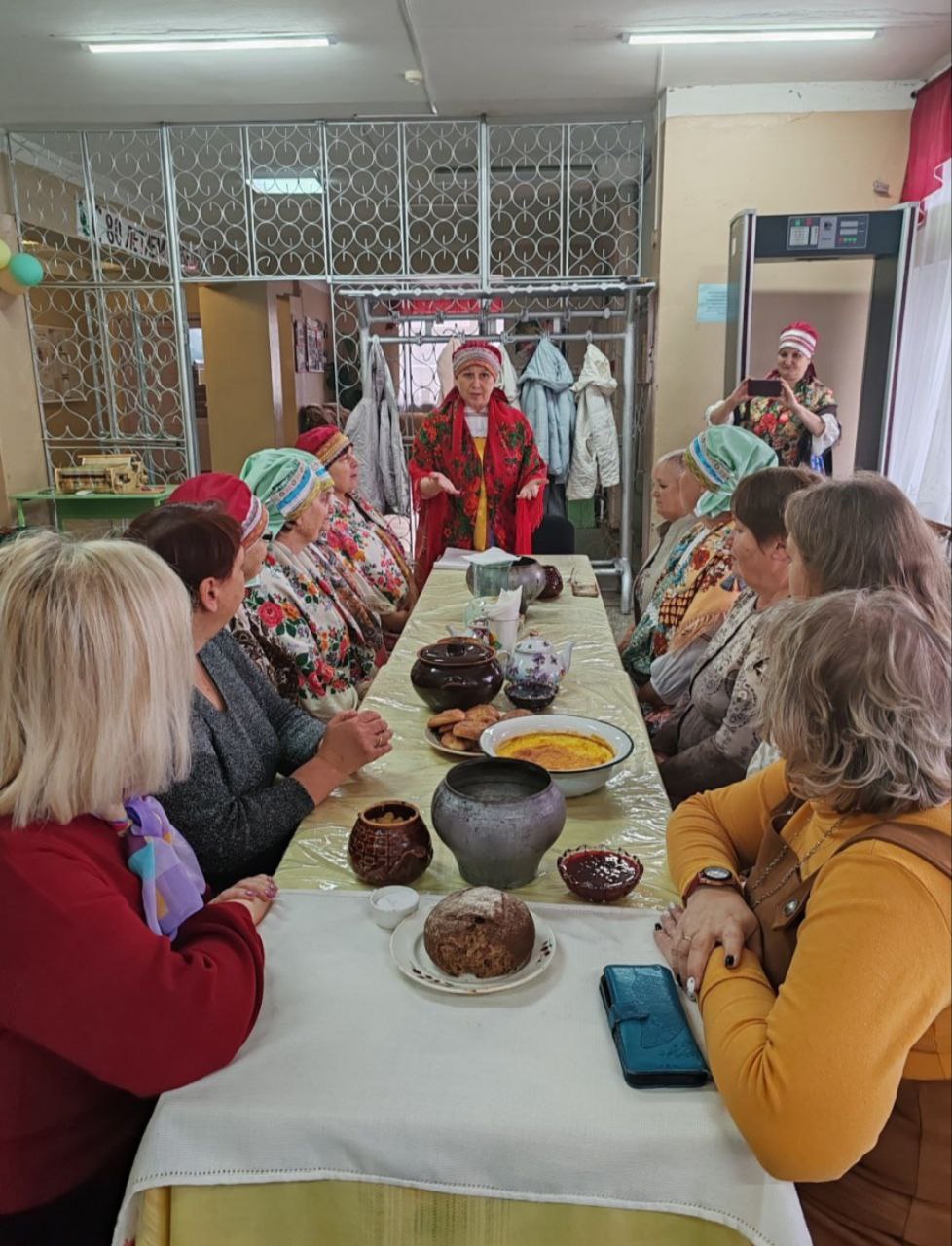 Гостей встретили по всем правилам старинных обычаев: угощали всех ржаным караваем, знакомились, а фольклорная группа « Малинушка» исполнили для гостей веселые народные песни.