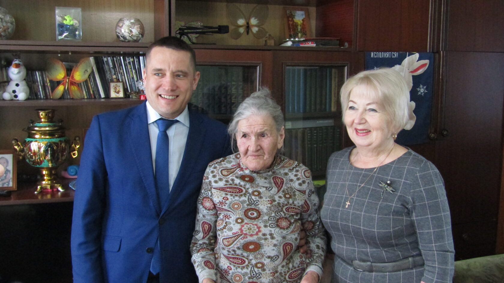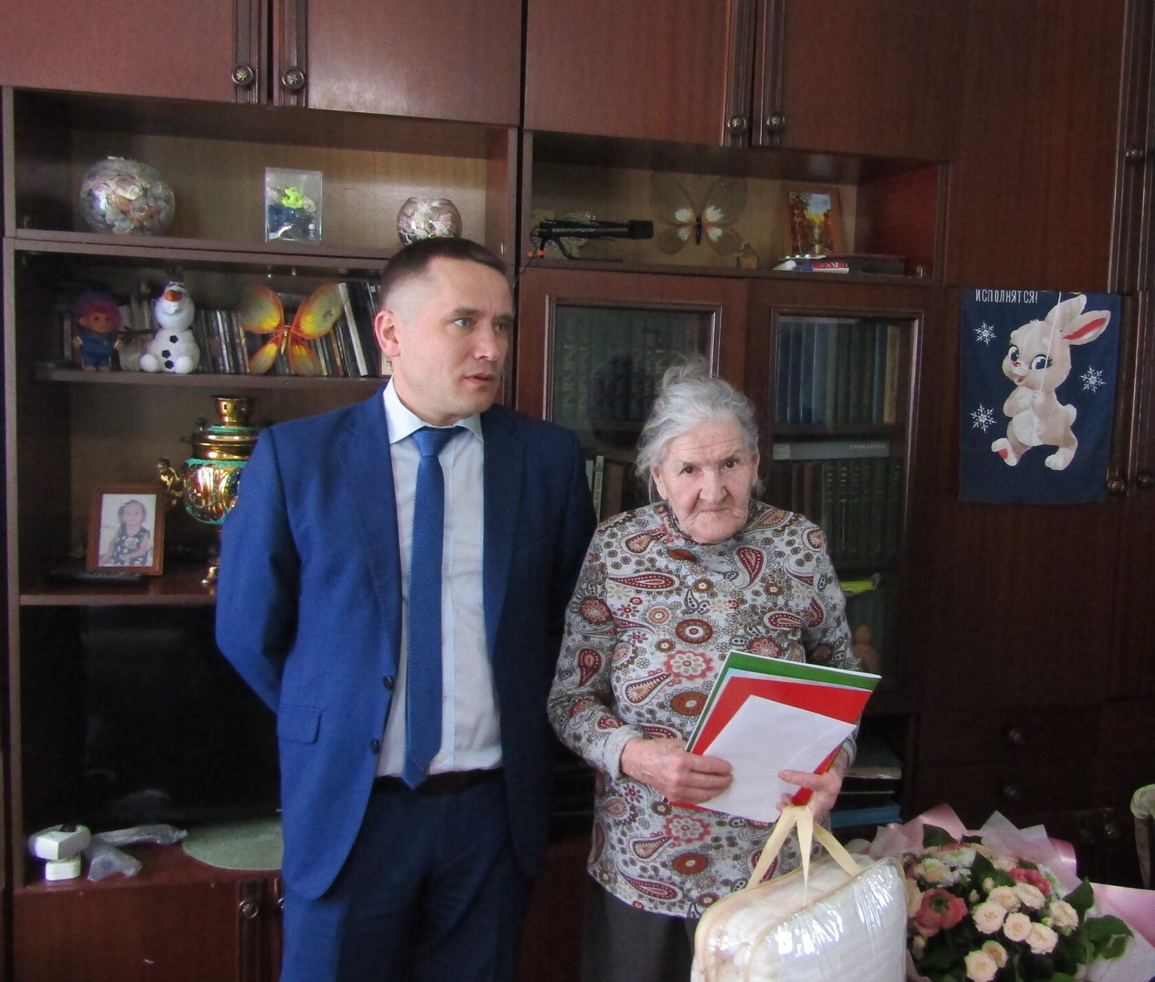 Седьмого февраля, по случаю такого знаменательного юбилея, Мария Петровна принимала поздравления не только от родных и близких. Её пришли поздравить глава Фаленского района С.С.Чурин и председатель районной организации ветеранов В.И. Астраханцева. Юбилярше вручили поздравление от Президента РФ В.В. Путина, преподнесли в подарок теплый плед от Правительства Кировской области и для души – сборник фотографий, в который вошли работы ветеранов Кировской области, в том числе нашего района.