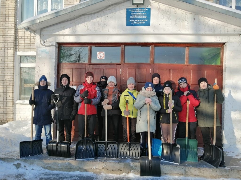 Субботний день 5 февраля 2022 года в пгт Опарино выдался морозным, но солнечным. В этот день волонтеры нашей школы собрались у здания школы. Несколько лет подряд в начале февраля в районе действовал отряд Снежного десанта, но вот нынче студенты не приехали, а снег никуда не делся. И решили мы, что сами можем помочь ветеранам очистить крыши от снега. И вот обучающиеся 8- 11 классов в полной боевой выкладке, с лопатами за плечами отправились покорять снежные вершины, то бишь заносы! Ребята и преподаватели разделились на три группы, каждая из которых направилась по определенному адресу. За три часа ребята помогли избавиться от снега на крышах трем ветеранам, работали дружно, с огоньком и шутками! А вместе, как известно, «весело шагать по просторам», и трудиться, и отдыхать тоже! Спасибо ребятам за бескорыстную помощь людям! Эта акция была началом реализации социального проекта «Добро рядом».