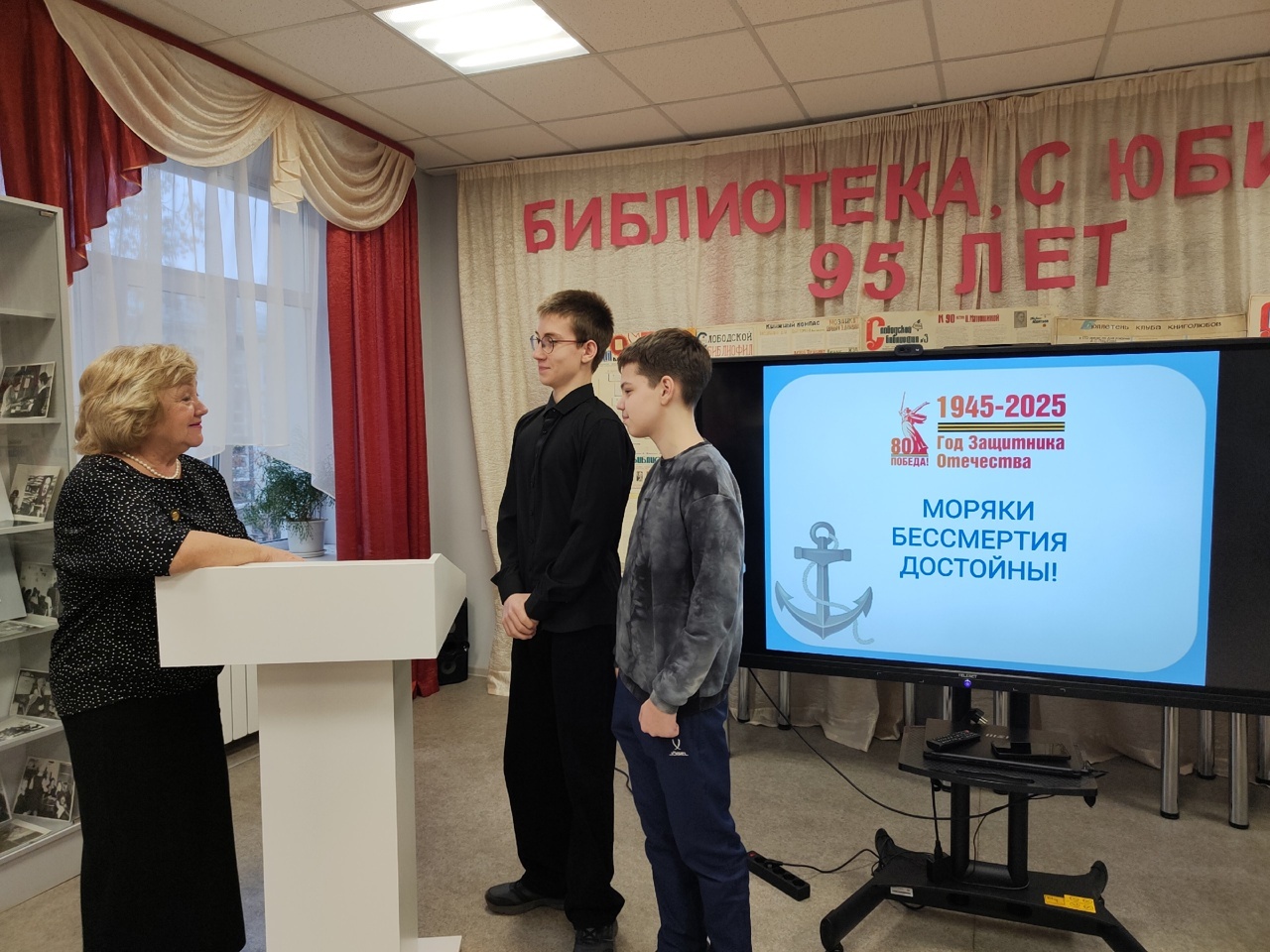 Во второй части мероприятия заведующая Центром патриотического воспитания имени Григория Булатова Н.В. Лихачева предложила посмотреть презентацию «Моряки-слобожане».