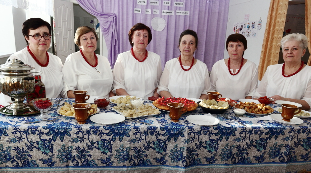 В читальном зале библиотеки накрыт стол. На нем самовар, большой пирог с калиной (самое любимое блюдо участников ансамбля «Калина») и пельмени, пельмени, пельмени. Более двух сотен пельменей приготовили к празднику женщины. Пельмени вареные, пельмени жареные, большие, маленькие. С мясом, с рыбой, с грибами, с картошкой...