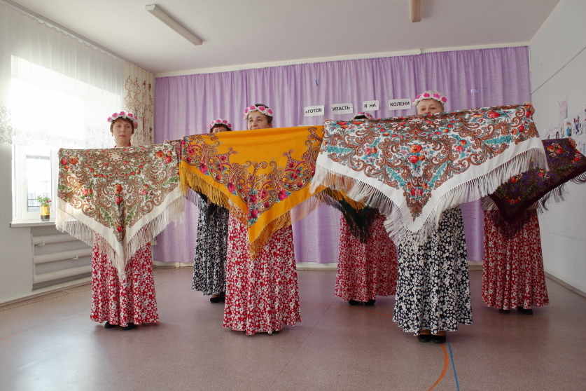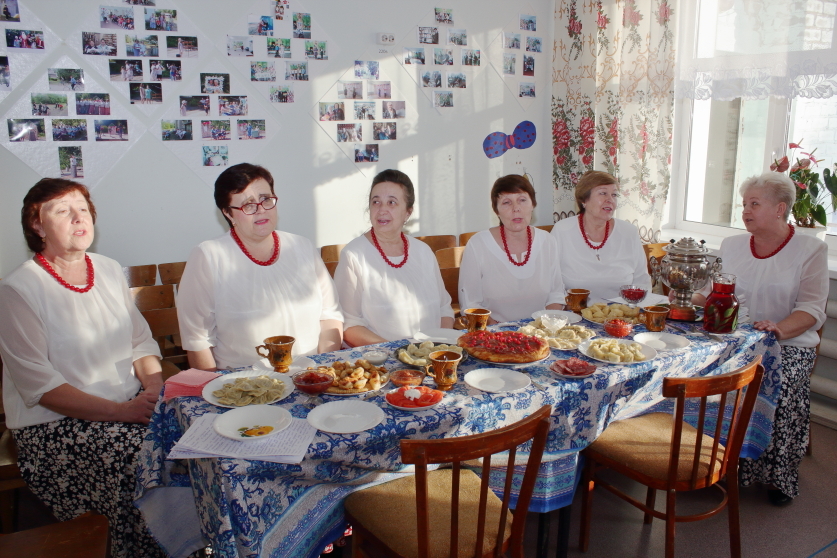 Как уже было сказано выше, все женщины, пришедшие на праздник — участницы местного ансамбля ветеранов «Калина». Ансамбль универсальный, его участницы могут все — петь, плясать, в театральной сценке выступить. Что, собственно, и доказали, исполнив несколько концертных номеров, благодаря которым праздничная атмосфера ощущалась еще сильнее.