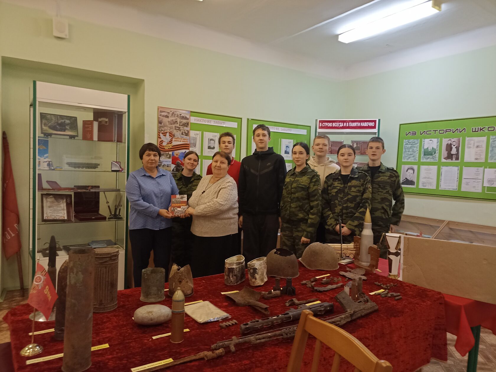 Символично, что презентация и передача уникальной книги-сборника эссе «Помним», посвященного поколению победителей: тем, кто совершил невозможное, разгромил немецко-фашистских захватчиков, состоялась в школьном музее. На презентацию книги были приглашены учащиеся кадетского класса, хранительница музея – Скородумова Светлана Геннадьевна, правнук ветерана Великой Отечественной войны, о котором написано эссе.